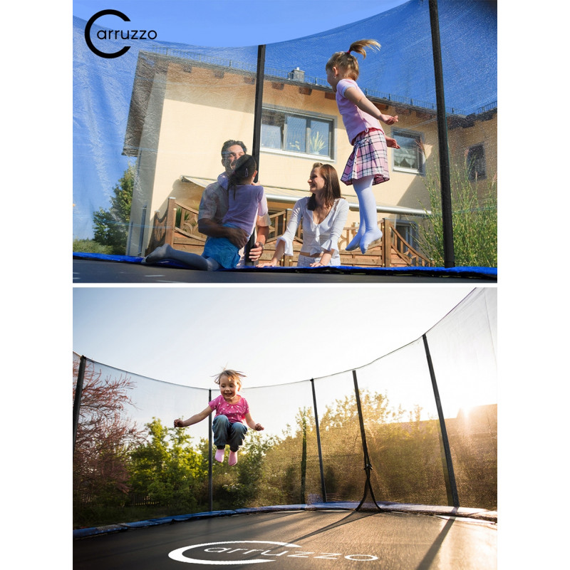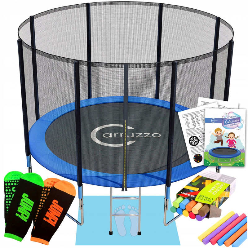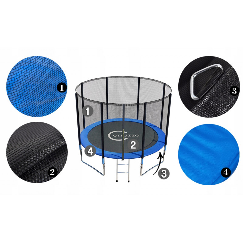 Trambulina Carruzzo este alegerea ideala pentru copiii plini de energie si pentru toti cei care iubesc activitatea in aer liber. Construita din otel calit , cu o structura solida si durabila, ofera stabilitate si siguranta ridicata in timpul utilizarii. Este conceputa pentru a rezista la utilizare intensa, fiind certificata CE si TUV. Plasa de protectie inalta si scara de acces inclusa permit o utilizare comoda si in siguranta. Suprafata elastica este realizata din polipropilena combinata cu fibra de carbon , ceea ce ofera o saritura confortabila si protejeaza structura impotriva deformarii. Arcurile zincate sunt protejate cu o husa dubla din PVC si spuma pentru a evita contactul accidental cu partile metalice. Este o trambulina rezistenta la intemperii si radiatii UV, ideala pentru gradina si folosire pe termen lung.