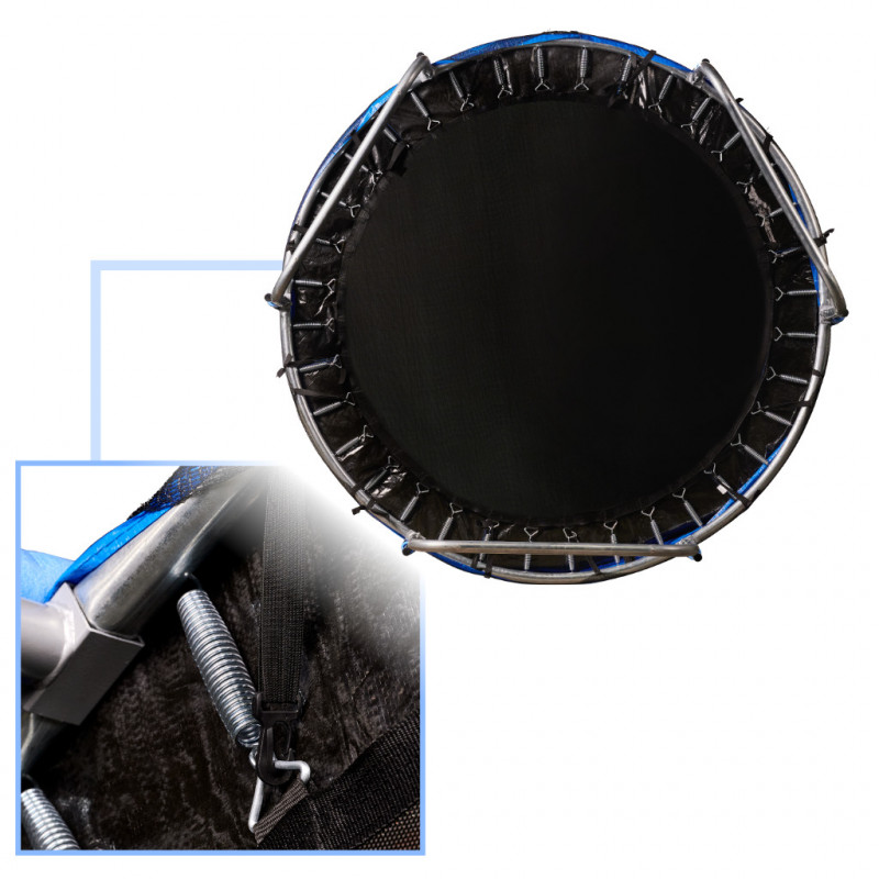 distractie in siguranta - trambulina a fost echipata cu caracteristici esentiale, cum ar fi o plasa de siguranta si o protectie cu arc pentru a asigura siguranta in timpul fiecarei sarituri