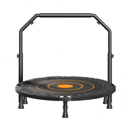 Trambulina fitness cu diametru de 100cm este ideala pentru exercitii de grup in cadrul claselor de adulti si copii, dar si acasa. Manerul de sprijin poate fi reglat de la 100 la 125 cm pentru a satisface nevoile intregii familii. Calitate ridicata a materialelor folosite asigura o rezistenta de pana la 150 kg. Se poate strange si depozita rapid in trei pasi, fiind pliabila total.Specificatii:Diametru: 100cm, 80 cm spatiu pentru saritNumar arcuri din otel: 34Inaltimea de la sol: 21,2cmGreutate max utilizator: 150 kgMaterial special pentru sarit, anti-zgarieturi si antiderapantPrinderi din otel de inalta calitateManer de siguranta ce poate fi reglat de la 100 la 125 cmPicioarele de sprijin pot fi indepartate prin rotire, perfect pentru depozitareStructura din otel zincat, absorbtie a socurilor, antiderapant si silentiosCuloare: negru cu portocaliuGreutate: 8 kg, cu tot cu ambalaje 9 kgDimensiune colet: 39*12*77cmProducator: Merach