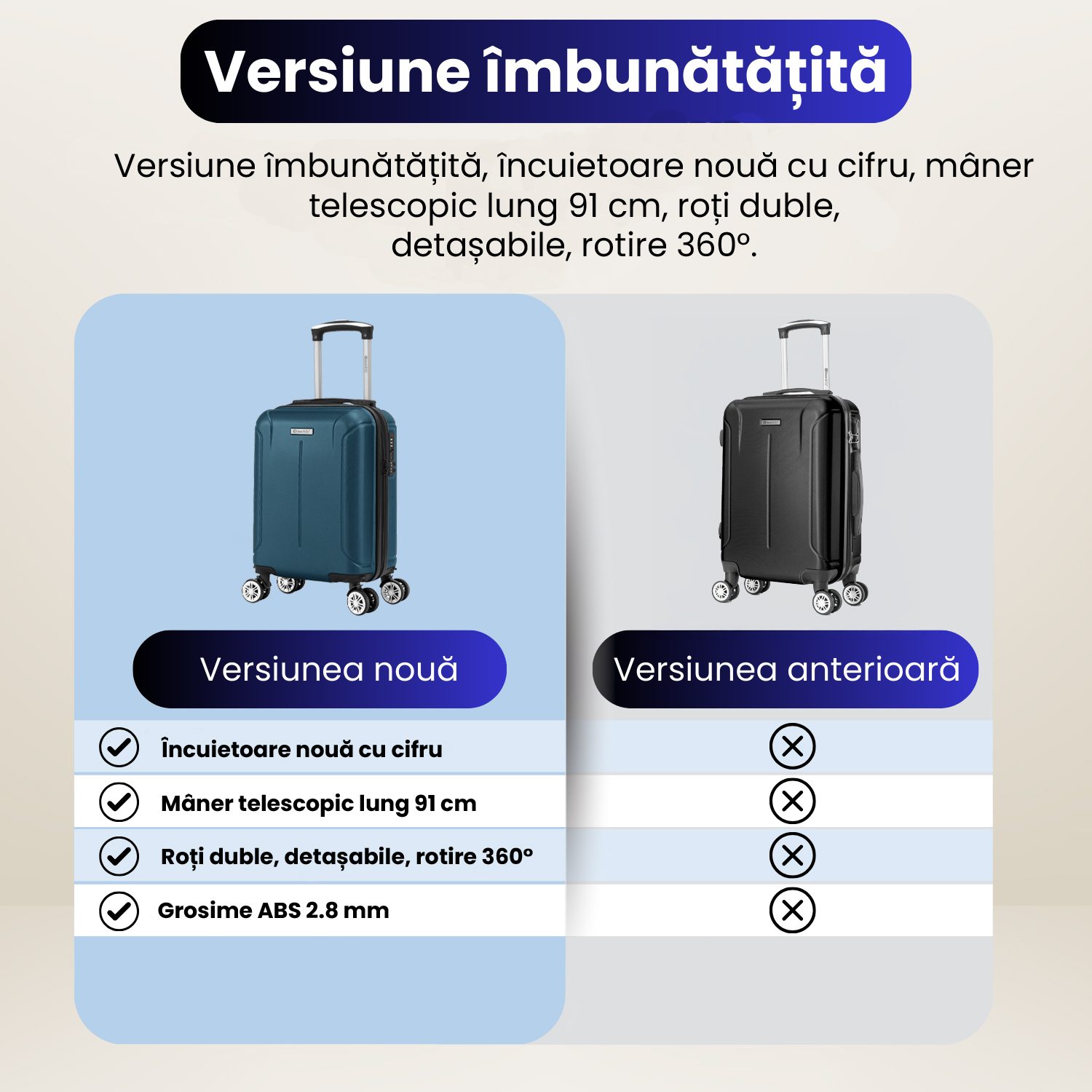 - Calitate: Troller fabricat din ABS de 2.8 mm, grosime cu mult peste media produselor din piata.