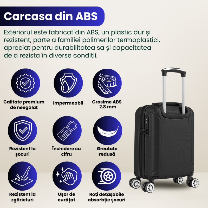 - Calitate: Troller fabricat din ABS de 2.8 mm, grosime cu mult peste media produselor din piata.