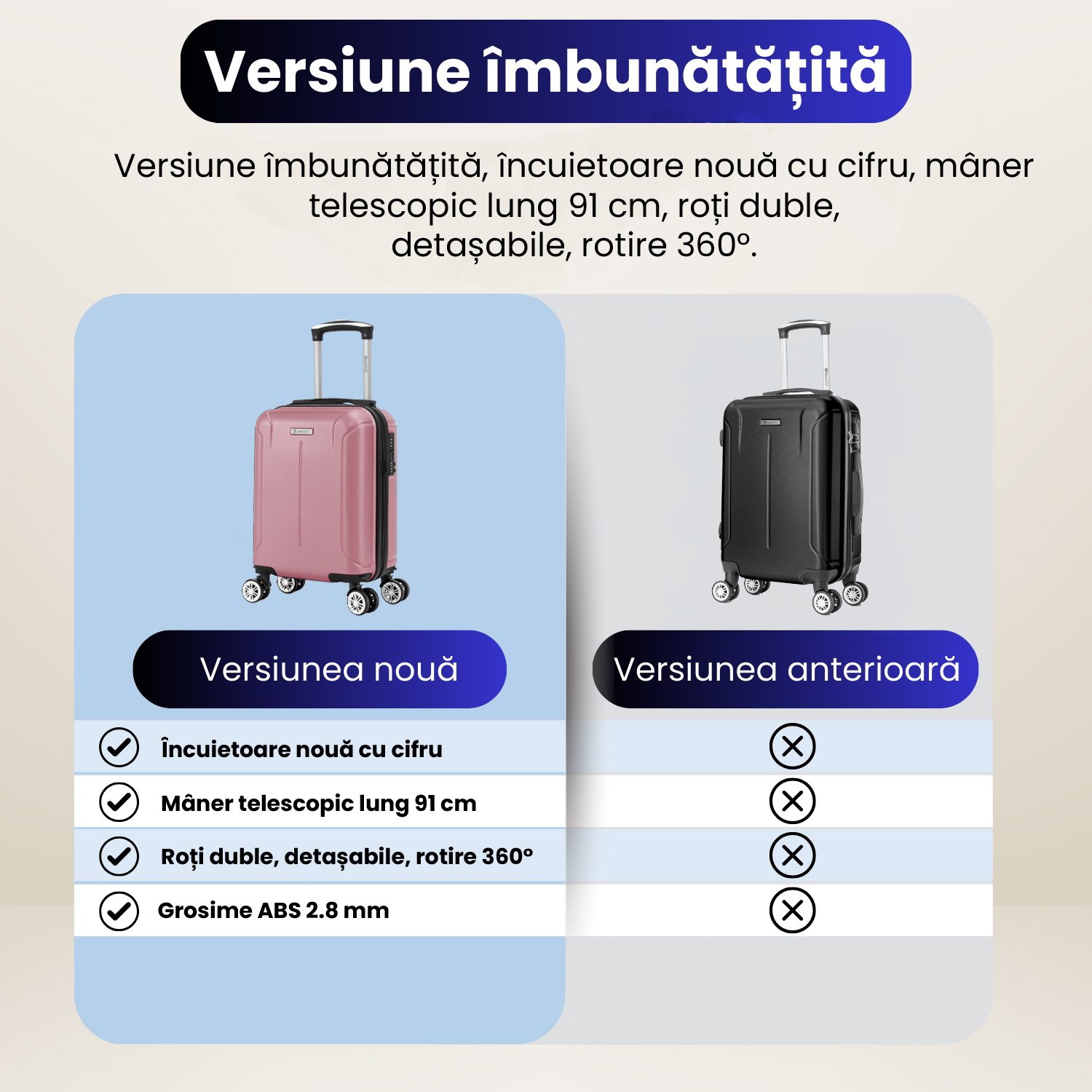 - Calitate: Troller fabricat din ABS de 2.8 mm, grosime cu mult peste media produselor din piata.