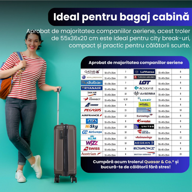 ![Troler cabina avion Quasar & Co.®, 55x35x20cm, bagaj de mana, troller cu fermoar antifurt, cifru, maner telescopic lung, geamantan cu 4 roti duble silentioase 360°, valiza ABS 2.8 mm, rezistent, 2 compartimente cu buzunar, 10kg, Smart, Dark coffe Troler cabina avion Quasar & Co.®, 55x35x20cm, bagaj de mana, troller cu fermoar antifurt, cifru, maner telescopic lung, geamantan cu 4 roti duble silentioase 360°, valiza ABS 2.8 mm, rezistent, 2 compartimente cu buzunar, 10kg, Smart, Dark coffe [1]](https://www.magnetcenter.ro/image/cache/catalog/imported/maxonline/44041075-457x457.jpg)