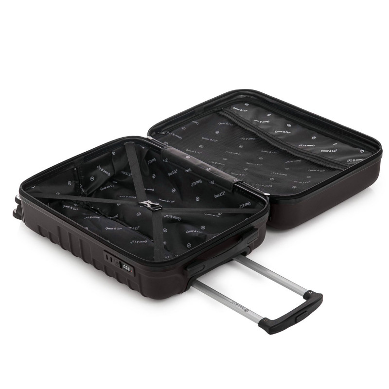 Pentru ca este realizat din ABS, trolerul S de la Quasar & Co.® , este foarte rezistent si cantareste doar 2,3 kg. Exteriorul este din ABS, un material plastic dur, care face parte din familia polimerilor termoplastici si care are o multime de proprietati.