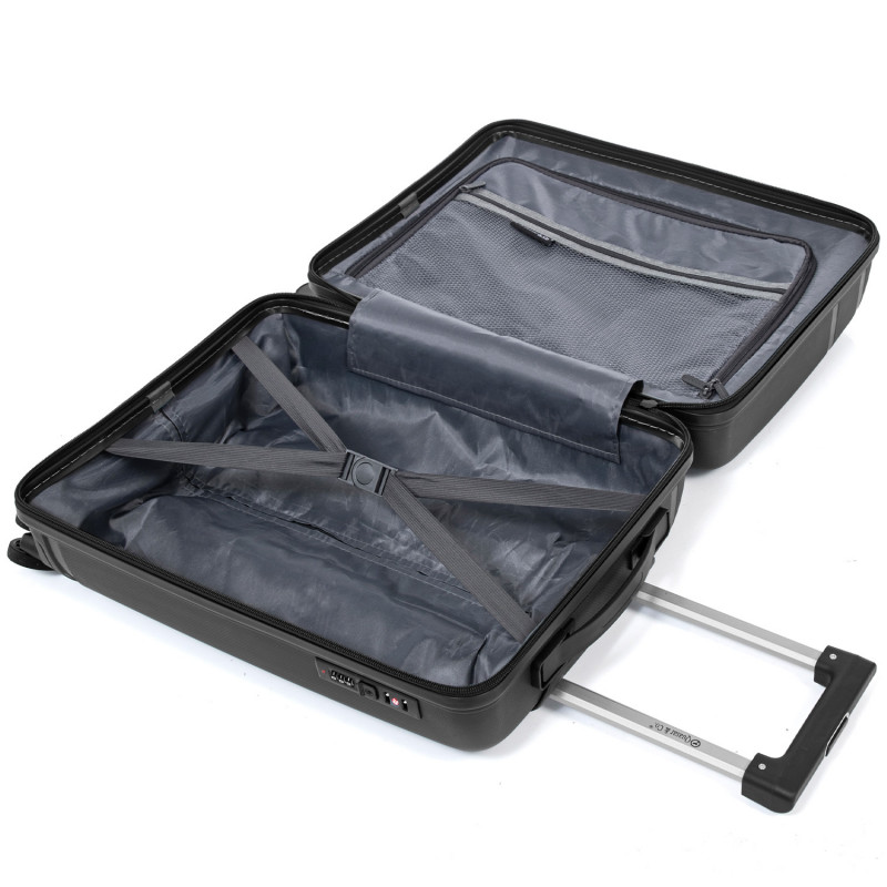 Pentru ca este realizat din Polipropilena, trolerul AERO marimea S de la Quasar & Co.® , este foarte rezistent si cantareste doar 2,4 kg. Exteriorul este din Polipropilena, un plastic termoplastic versatil, rigid, popular, rezistent la caldura si substante chimice.