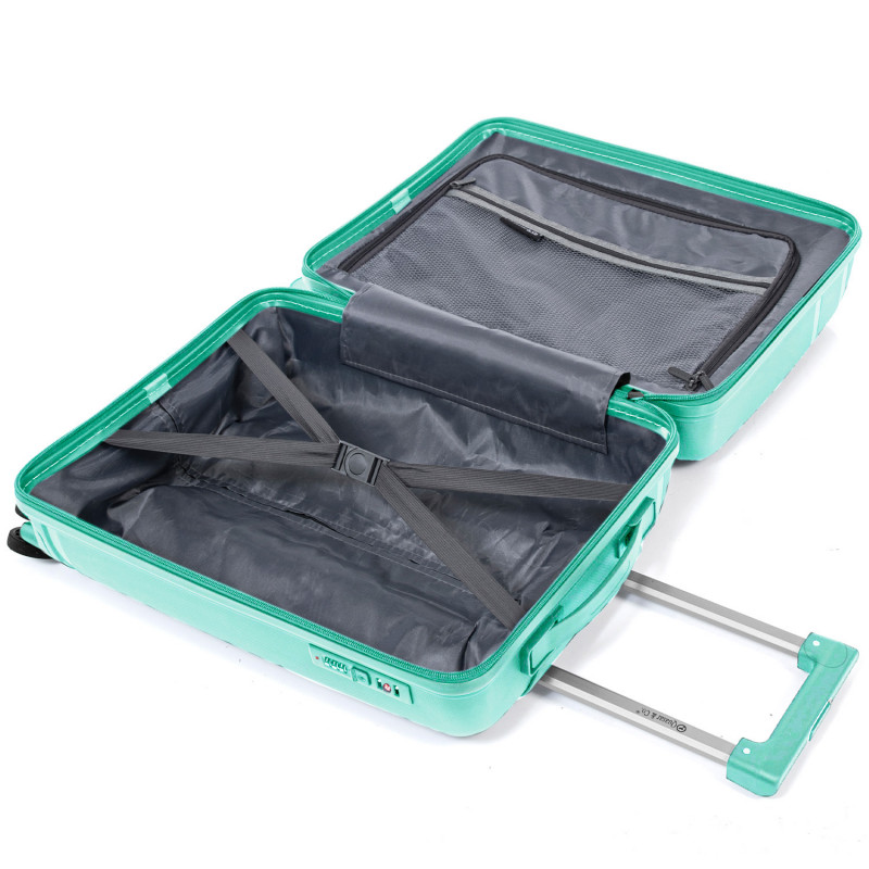 Pentru ca este realizat din Polipropilena, trolerul AERO marimea S de la Quasar & Co.® , este foarte rezistent si cantareste doar 2,4 kg. Exteriorul este din Polipropilena, un plastic termoplastic versatil, rigid, popular, rezistent la caldura si substante chimice.