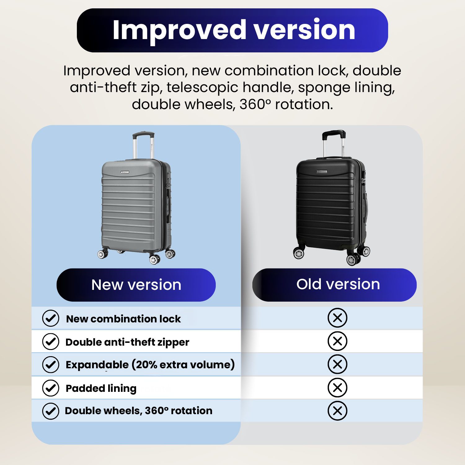 - Mobilitate usoara: Dotat cu 4 roti duble cu rotatie de 360°, trolerul LINE va permite sa navigati cu usurinta pe orice suprafete.
