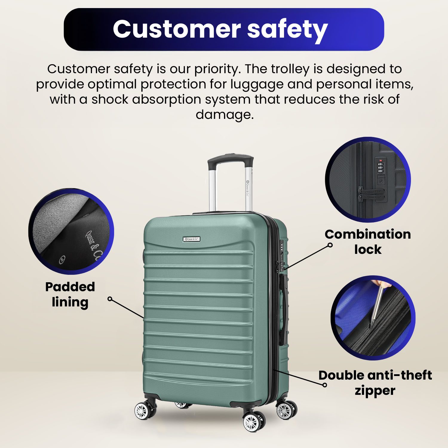 - Siguranta: Fermoarul antifurt si cifrul de securitate va asigura protectia obiectelor personale.