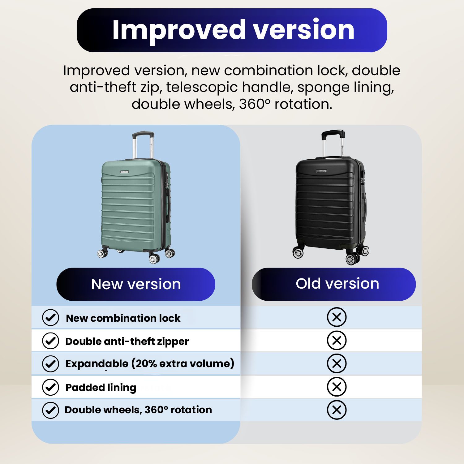 Perfect pentru calatorii cu avionul, acest troler de 77 x 49 x 31-36 cm extensibil dispune de 4 roti duble cu rotatie de 360° pentru manevrabilitate usoara. Fabricat din ABS rezistent, are maner telescopic, cifru si fermoar antifurt pentru siguranta.