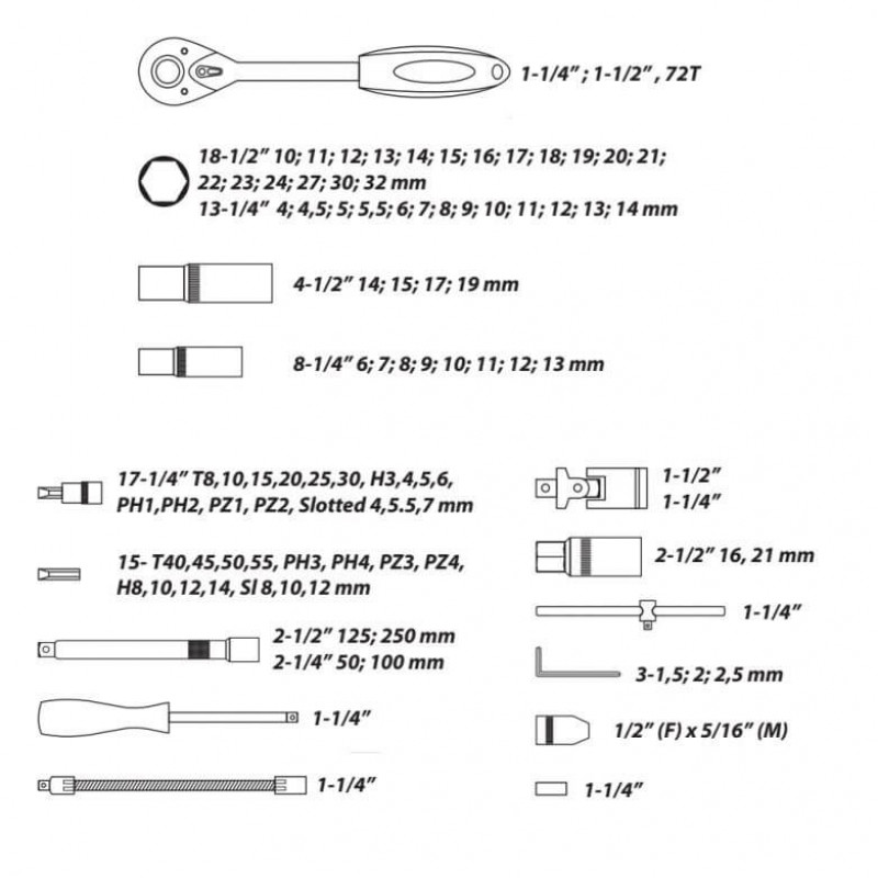 Fabricat din otel crom-vanadium Dimensiunea de fixare 1/4” si 1/2”