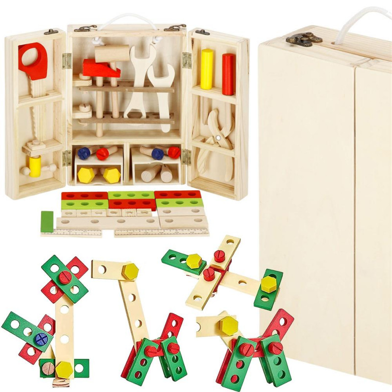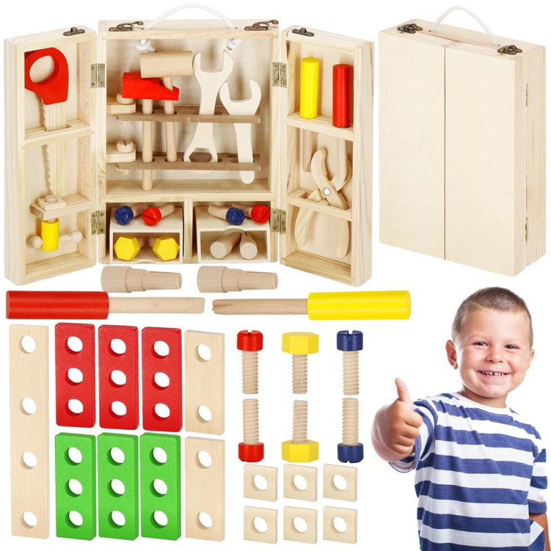Un total de 12 compartimente in interiorul cutiei Setul nostru de unelte din lemn pentru copii nu este doar o jucarie excelenta, ci si un instrument educational care sprijina dezvoltarea abilitatilor manuale si a coordonarii motorii la copii. Folosind uneltele, micutul dvs. isi va imbunatati abilitatile de apucare, intoarcere si manipulare. In plus, puteti fi siguri ca uneltele noastre sunt sigure pentru copii, deoarece au fost proiectate cu grija tinand cont de manutele lor si nu contin muchii ascutite sau parti periculoase.