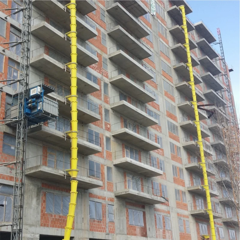 Tub evacuare deseuri Materialul folosit este polipropilena de prima calitate, garantand astfel o rezistenta deosebita si o lunga durata de exploatare in orice conditii meteorologice. Nervurile verticale ofera produsului un grad ridicat de elasticitate si de amortizare a socurilor precum si absorbtia zgomotelor interne. La fiecare 10 m inaltime de coloana este necesar sa fie montat un suport pentru cuva de incarcare. Acesta va sustine cu ajutorul lanturilor urmatoarele tuburi din coloana. *Produs fabricat 100% in Italia de Tekcnoplast SRL*