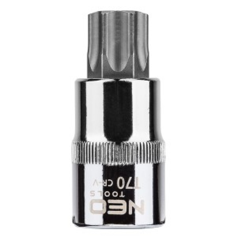 Tubulara cu Bit Torx 1/2",T70 X 55 mm, Neo (ref. 08-759) dimensiune T70, lungime 55 mm. tubulara este fabricat din otel crom vanadiu durabil. Capatul hexagonal este fabricat din otel aliat S2 de inalta calitate. Fiabilitatea produsului este confirmata de o garantie de 25 de ani. Marca Neo raspunde asteptarilor profesionistilor.