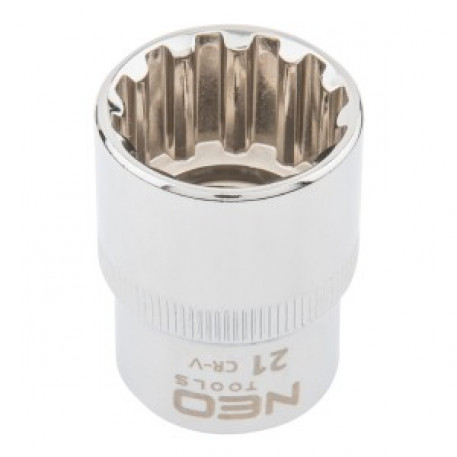 Tubulara (ref. 08-593) dimensiune 21 mm, fabricat din otel crom vanadiu durabil, conform standardului DIN 3124. Forma sferica a tubularei ofera o gama foarte larga de aplicatii, facand posibila desurubarea suruburilor torx, spline, 12 unghiuri, metrice, inch si patrate. Calitatea uneltei este confirmata de certificatul TÜV si de garantia de 25 de ani a producatorului. Marca Neo raspunde asteptarilor profesionistilor.