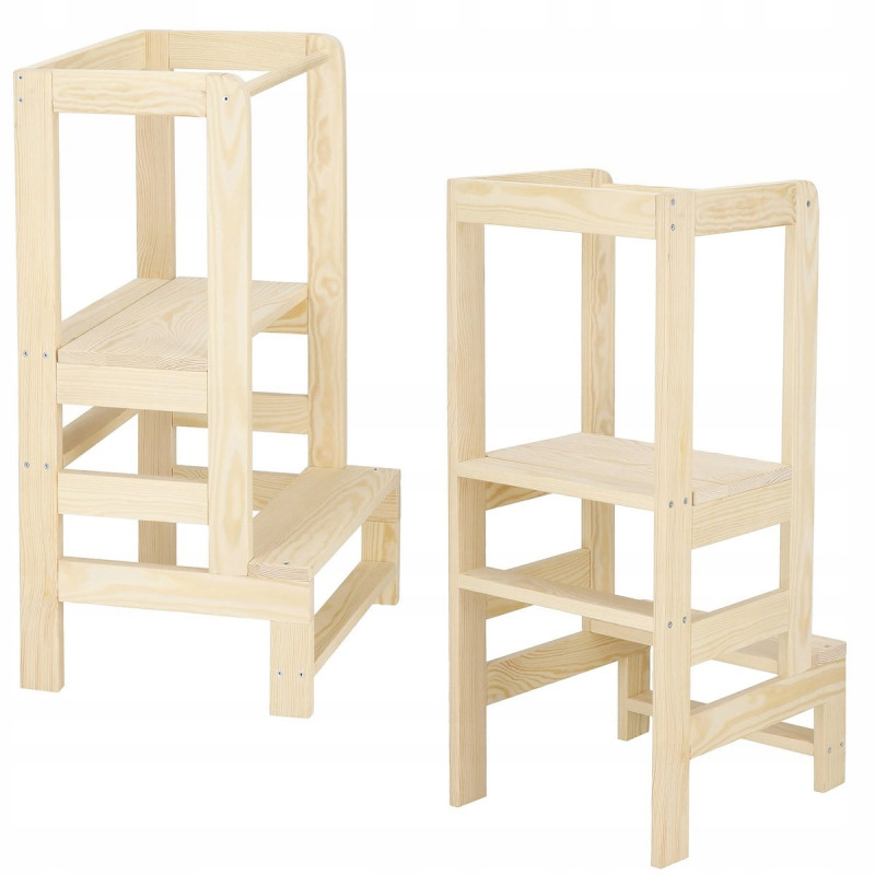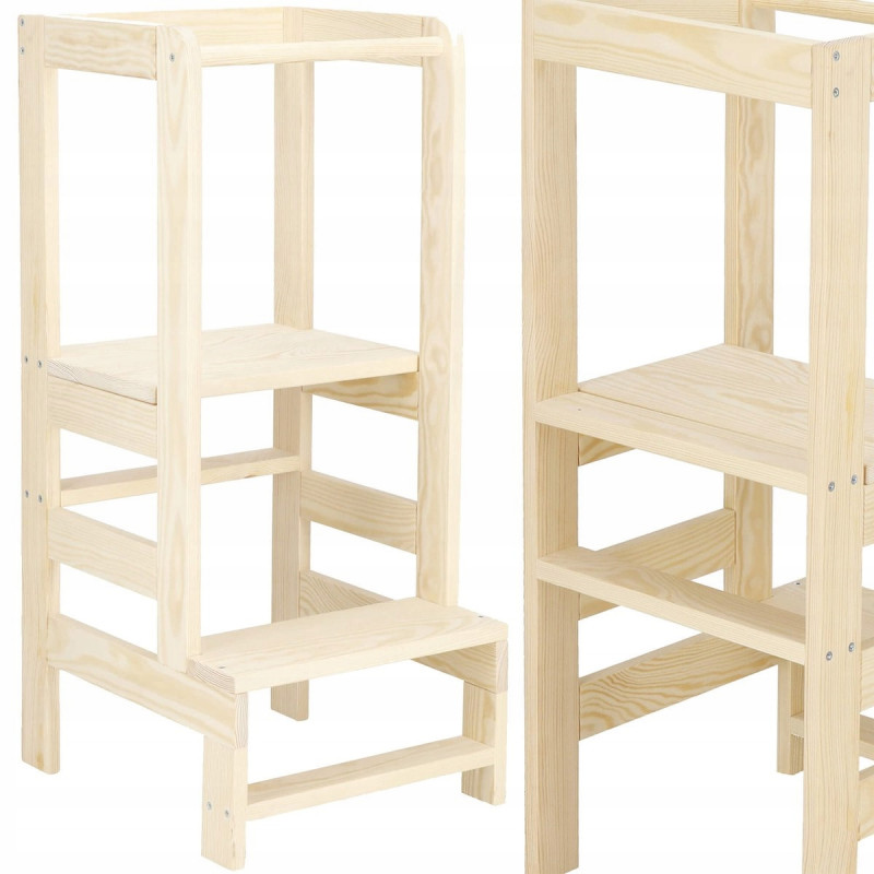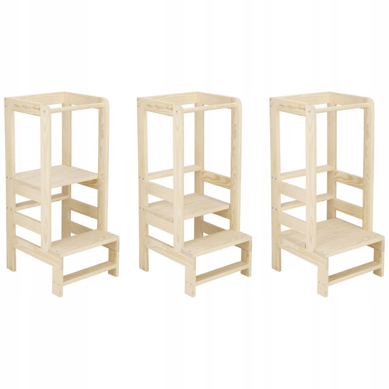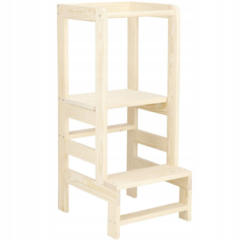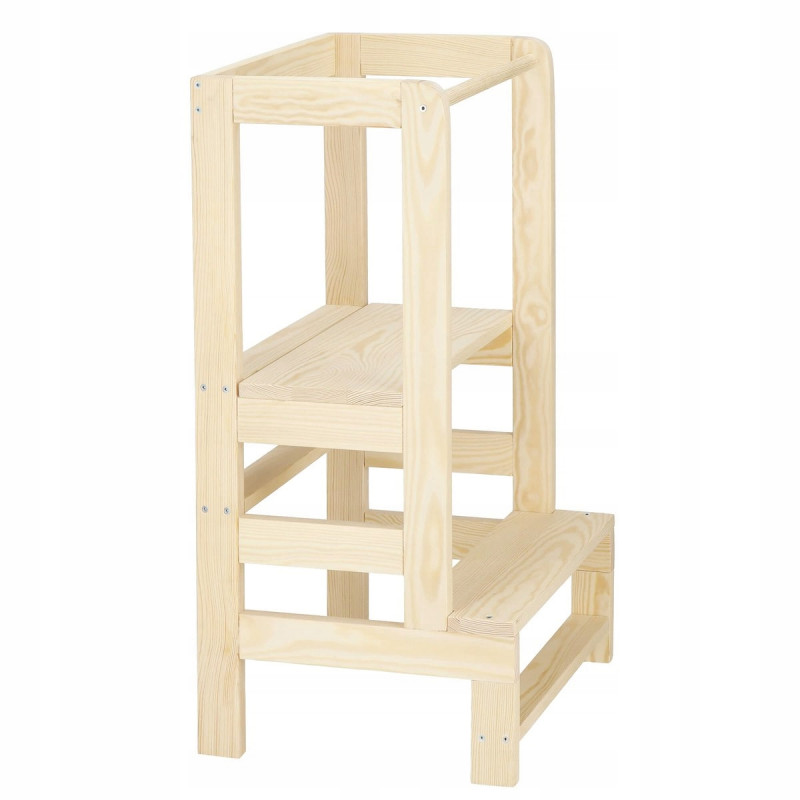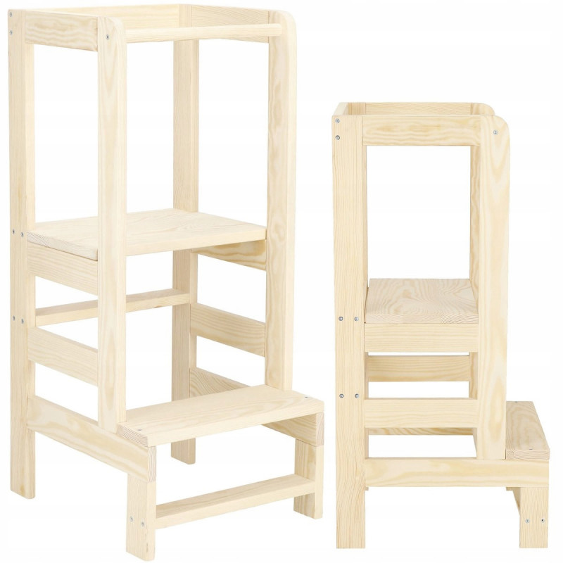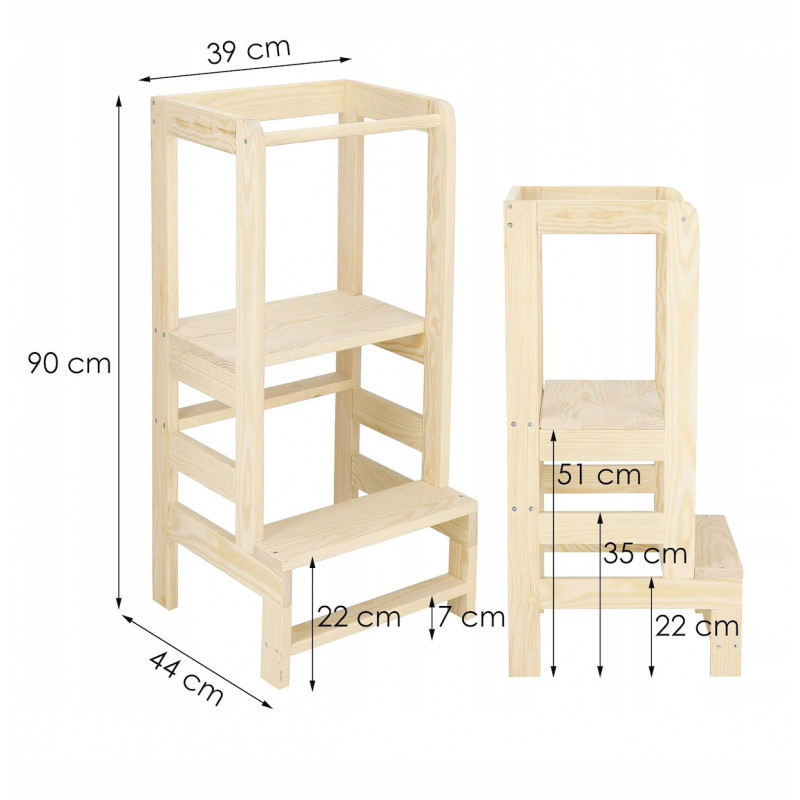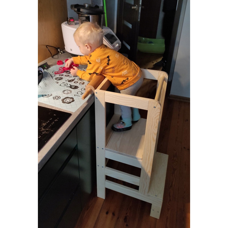 Ajutorul de bucatarie are un spatiu stabil in picioare si intreaga familie isi poate pregati mesele impreuna intr-o maniera relaxata. Scaunul practic de catarat este potrivit pentru copiii mici. Mai presus de toate, desigur, siguranta copiilor este foarte importanta. Ajutorul de bucatarie este produsul ideal pentru copiii care doresc sa-si ajute parintii in bucatarie si nu au ajuns inca la nivelul mesei. Aceasta platforma va permite sa va dezvoltati pasiunea pentru gatit inca de la o varsta frageda. In plus, ajutorul de bucatarie le permite parintilor sa supravegheze copilul. Un mare avantaj al ajutorului de bucatarie este posibilitatea de reglare a platformei pe 3 nivele - 22 cm, 35 cm sau 51 cm. Simpla impingere a placii de lemn creste nivelul. Ajutorul de bucatarie a fost dotat si cu 2 trepte pentru ca copilul sa se urce pe platforma independent. Copiii mai mici pot fi adusi cu ajutorul parintilor. SIGUR: ofera un loc sigur, stabil pentru a sta intr-o pozitie ridicata pe suprafata de lucru, poate fi fixat rapid si usor la diferite inaltimi SOLID SI STABIL: in primul rand, ne concentram pe siguranta copiilor, fiabilitatea si calitatea articolului INDEPENDENT: permite copilului sa urce si sa urce singur VERSATILITATE: versatil. Introducerea unei placi creeaza un pas suplimentar FORTA: din lemn masiv de pin, toate marginile au fost slefuite, stabilitate, tehnologie de asamblare simpla si sigura, design frumos intr-o forma usoara PARAMETRI: