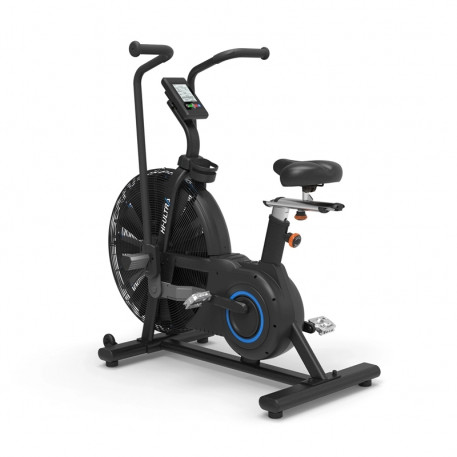 Ultra Air Bike este o bicicleta profesionala dezvoltata special pentru cerintele sportive HIIT, ce ofera un antrenament intens. Respectand conceptul de antrenament HIIT, bicicleta pe baza de aer ajuta instructorii sa obtina eficienta maxima prin abilitati cardiorespiratorii excelente si viteza extrema.Bicicleta fitness UltraBike ofera un antrenament pentru membrele superioare, un antrenament pentru membrele inferioare si trei metode de antrenament a intregului corp. Astfel, aceasta bicicleta fitness indeplineste pe deplin nevoile de instruire ale tuturor.Rezistenta acestei biciclete este controlata de utilizator si nu de aparat. Utilizatorul poate controla in mod autonom intensitatea exercitiului: cu cat este mai rapida apasarea, tragerea si pedalarea, cu atat rezistenta este mai mare).Dotata cu consola digitala si functii multipe, bicicleta pe baza de aer are 3 moduri tinta, 2 moduri intermitente, sistem de monitorizare a frecventei cardiace si se poate conecta la WAHOO si alte aplicatii terte pentru a gestiona informatia sportiva.Manerele de sincronizare cu pedalele sunt acoperite cu material de calitate din PVC ce ofera control sporit in timpul miscarii, siguranta si o senzatie de confort.Scaunul cu spuma PU este proiectat in conformitate cu ergonomia pentru a asigura o miscare lina, oferindu-le sportivilor o experienta confortabila in timpul antrenamentului.Pedalele din aliaj de aluminiu cu doua fete poate satisface nevoile antrenorilor la intensitate de antrenament diferita. Permite fixarea pantofilor profesionisti pentru ciclism.Specificatii UltraBike Air:Model HB005 UltraBike AirCertificare: CEGreutatea maxima a utilizatorului: 150 kgRezistenta la aerTransmiterea unitatii de tip 1 PasSincronizarea pedalei / maneruluiPedala pentru picior laterala din aliaj de aluminiuPedala fixa din aluminiuManivela supradimensionataRulment de marca TPIAfisare consola: Ecran 5''LCD ce afiseaza informatii de timp, viteza / viteza medie, calorii / calorii medii, distanta, RPM / RPM mediu, Watt / Watt mediu, ritm cardiac / Frecventa medie a inimiiLimba: englezaPrograme: 3 programe tinta (timp, distanta calorii), 3 programe de frecventa cardiaca (65%, 75%, 85%) 4 programe cu intervale (3 intervale de timp ai 1 distanta)Telemetrie pentru monitorizarea frecventei cardiaceDimensiunea ventilatorului: 26 inciLamele ventilatorului: 26 ABSCerinte de putere: Baterii de celule 4 CDimensiunea produsului: 1272 × 648 × 1340 (mm)Greutate neta / Greutate bruta 63,3 kg / 79,8 kgDimensiune ambalare: 1355 × 400 × 905 (mm)