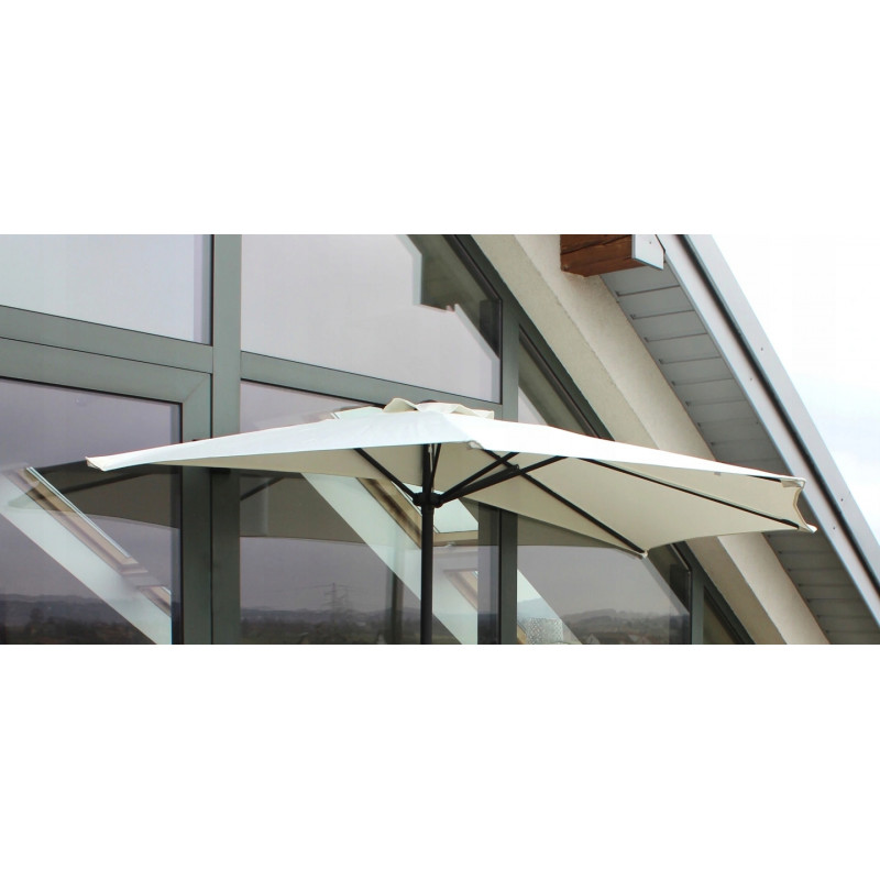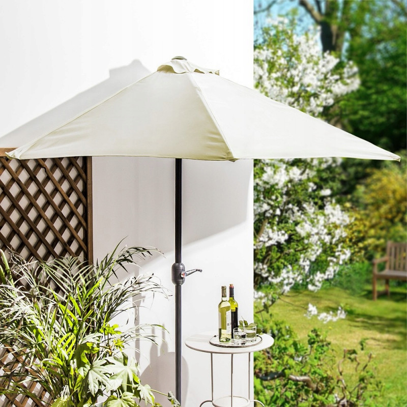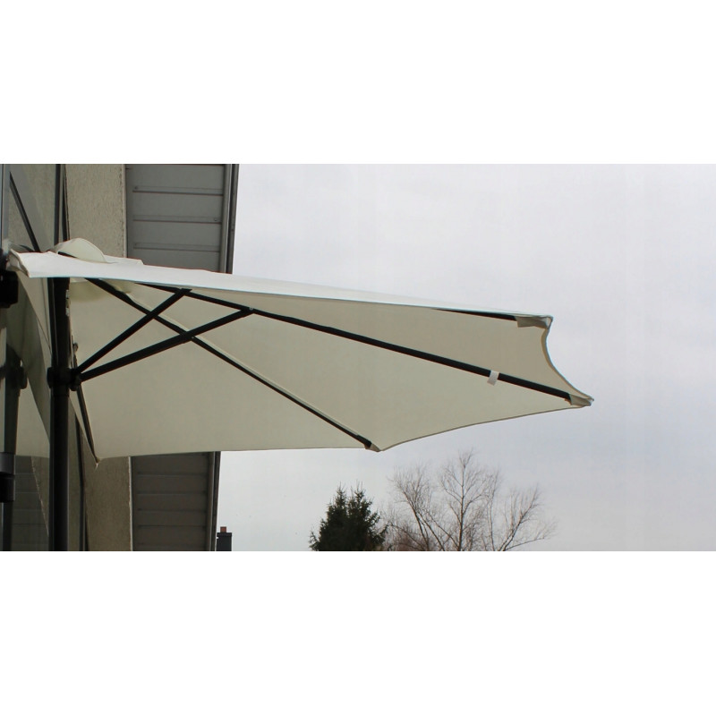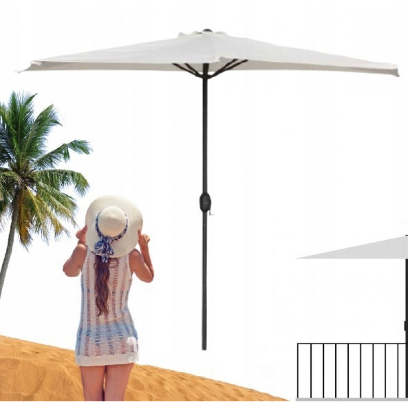 Umbrela de balcon pliabila jumatate de 2,7 m pentru perete cu diametrul de 270 cm Umbrela de gradina in picioare este produsul ideal pentru oricine se bucura de petrecerea timpului in aer liber. Forma semicirculara a umbrelei face ca articolul sa ocupe foarte putin spatiu, fiind astfel potrivit atat in gradina, cat si pe un balcon ingust. Umbrela de perete poate fi asezata cu usurinta pe perete, creand un loc placut de relaxare in zilele calduroase. Plierea si desfasurarea este usoara datorita manerului cu manivela!