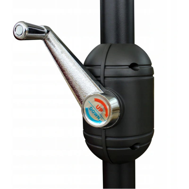 Manivela pentru deschidere usoara O umbrela de gradina si de balcon este o modalitate de a va relaxa in zilele calduroase. O putem instala cu usurinta in gradina noastra sau pe balcon, chiar langa perete, facand astfel umbra locului ales. Sub umbrela putem aseza o masa si scaune sau un sezlong confortabil. In acest fel, putem crea un loc de relaxare.Produsul a fost realizat din materiale de inalta calitate, rezistente la deteriorari si la conditiile meteorologice. Datorita acestui fapt, ne va servi cu siguranta pentru o perioada lunga de timp, umbrind locul selectat pe terasa sau pe balcon. Materialul din poliester nu este doar durabil, ci si rezistent la apa si ofera o buna protectie impotriva razelor solare. Articolul ofera o protectie excelenta impotriva soarelui si a ploii.