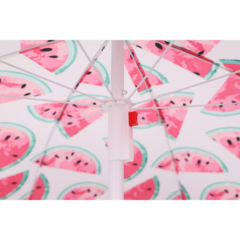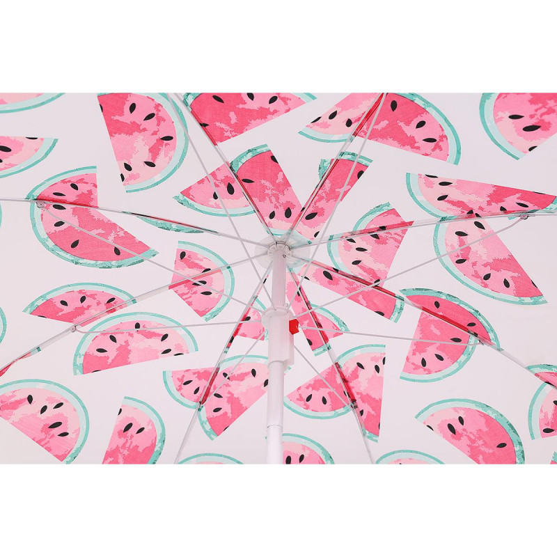 Scurta descriere Umbrela de plaja si balcon cu design inspirat din pepene este perfecta pentru zilele toride petrecute la mare sau in gradina. Structura rezistenta din otel si cupola generoasa din poliester asigura umbra placuta si protectie eficienta. Se monteaza usor si permite reglaje flexibile atat pe inaltime, cat si in unghi, pentru o utilizare adaptata oricarui spatiu.