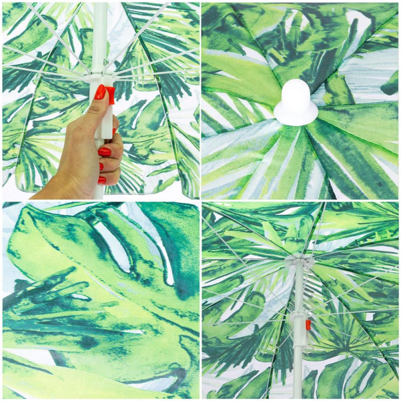 Cumul de avantaje: - realizate din cele mai bune materiale- protejeaza eficient impotriva razelor solare- este reglabil pe inaltime- foarte usoara- nu trebuie sa folositi baza, se poate infige in nisip/pamant- usor de desfasurat si pliat- husa cu maner de transport- husa usor de curatat- culori la moda NECESAR PENTRU ZILELE DE VARAUmbrela pliabila nu este un element separat al relaxarii verii. Protejeaza eficient impotriva razelor solare, oferindu-va momente de ragaz la umbra. Datorita greutatii si dimensiunilor sale usoare, este perfecta pentru:- plaja- balcoane- camping- pescuit- gradina- locul in care copilul se joaca, de exemplu langa cutia cu nisip sau piscina NU NECESITA STANDDatorita catargului cu varf, poti infige usor umbrela in pamant, tot in unghi, fara a fi nevoie sa iei baza cu tine. Solutia perfecta atunci cand intentionati sa va folositi umbrela in aer liber - la plaja, camping sau in parc.USOR DE UTILIZATPuteti desface si plia umbrela de plaja dintr-o singura miscare folosind butonul - exact in acelasi mod in care desfaceti o umbrela de ploaie in timp ce mergeti pe strada.REGLAREA INALTIMIIPuteti regla liber inaltimea umbrelei fara proceduri complicate. Tot ce trebuie sa faceti este sa ridicati manerul in punctul in care tuburile de catarg superior si inferior se conecteaza si puteti cobori sau ridica copertina.PROTECTIE IMPOTRIVA APEIPe langa functia de baza, adica protectie impotriva soarelui, umbrela noastra va functiona bine si ca acoperire impotriva ploii neasteptate. Datorita diametrului mare al copertinei, te vei proteja pe tine si bunurile tale de apa.USOARE SI COMPACTEGreutatea redusa si posibilitatea de pliere la dimensiuni reduse, datorita catargului din doua parti, sunt
