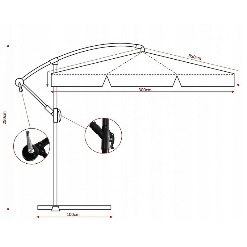 Scurta descriere: Umbrela de gradina tip banana este ideala pentru protectie impotriva soarelui si ploii, oferind confort in orice spatiu exterior. Designul practic cu brat lateral si reglare a inclinarii permite adaptarea usoara la pozitia soarelui.