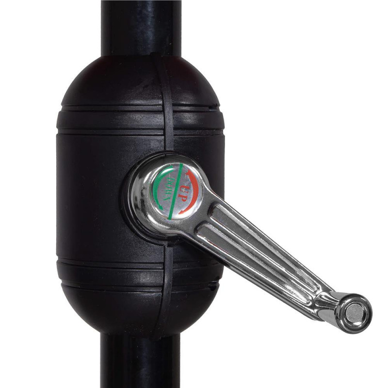 Dimensiune mare a baldachinului Mecanismul manivela este usor de utilizat si faciliteaza semnificativ desfacerea si plierea umbrelei. Doar rotiti manivela de cateva ori si baldachinul va acoperi complet masa sau sezlongurile de la soare.Materialul care a fost ales pentru a crea copertina a fost selectat cu grija. Acest lucru il face impermeabil si usor de curatat. Rama umbrelei este protejata cu un strat de pulbere neagra. Umbrela de gradina are capacitatea de a „ rupe cadrul ”. Acest lucru va fi perfect atunci cand soarele nu mai este complet deasupra copertinei pentru a garanta umbra in locul de odihna dupa ajustarea pozitiei acestuia.Un baldachin mare cu 8 panouri va oferi umbra placuta in zilele insorite si caniculare.