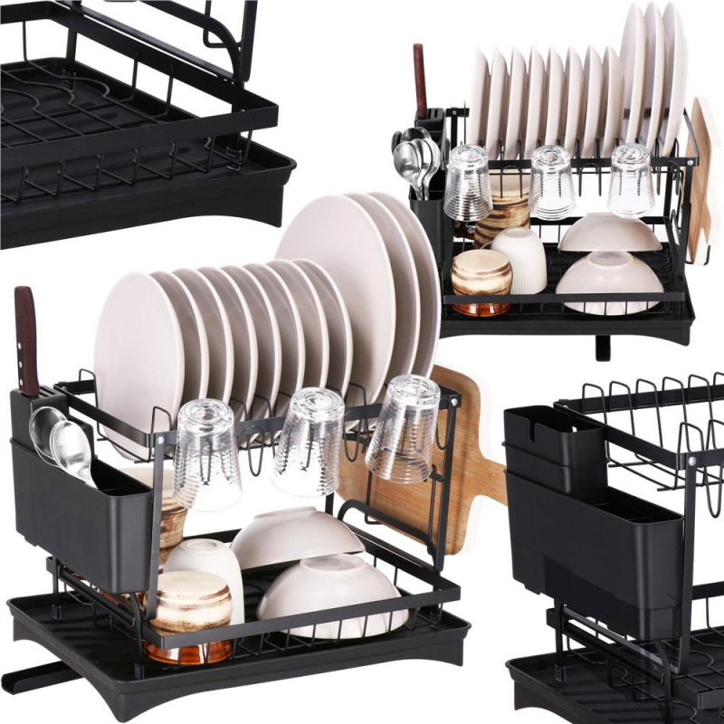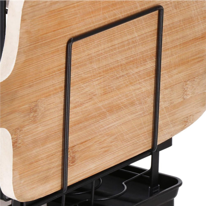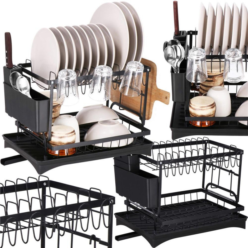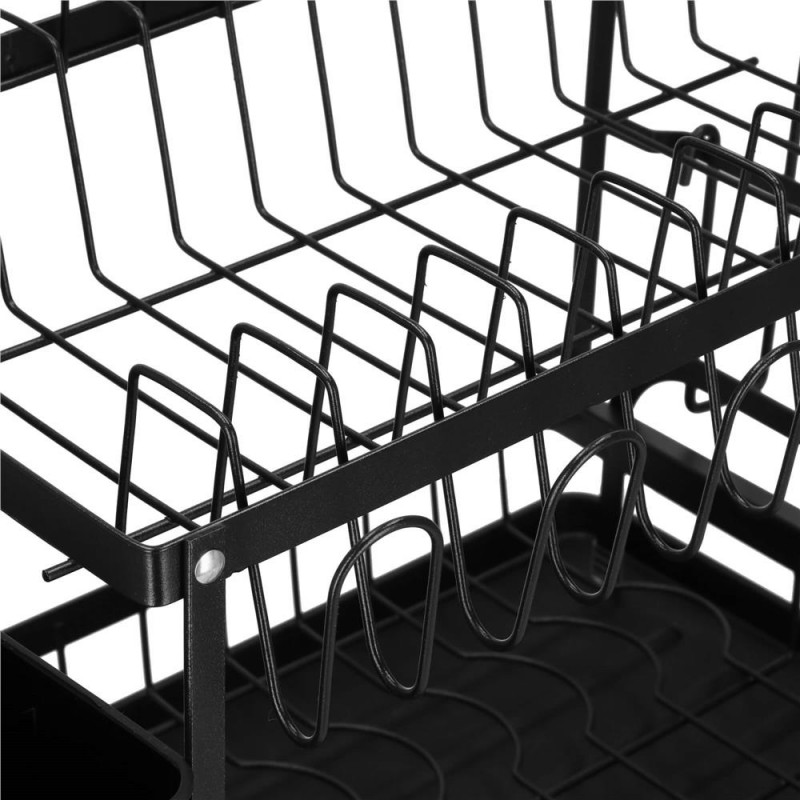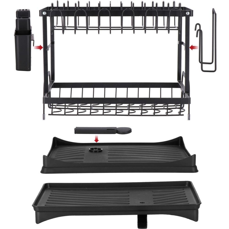 Include o tava de plastic detasabila si un suport pentru ustensile Constructia stabila, cu o baza confortabila, mare, ondulata, impiedica scurgerea apei pe blatul mesei si nu deterioreaza mobilierul. Este echipat cu un organizator de tacamuri agatat care poate fi atasat oriunde pe marginea uscatorului. Aspectul modern al uscatorului in stil loft il va face sa se potriveasca in orice interior. Datorita materialelor din care este confectionat, uscatorul este usor de curatat.