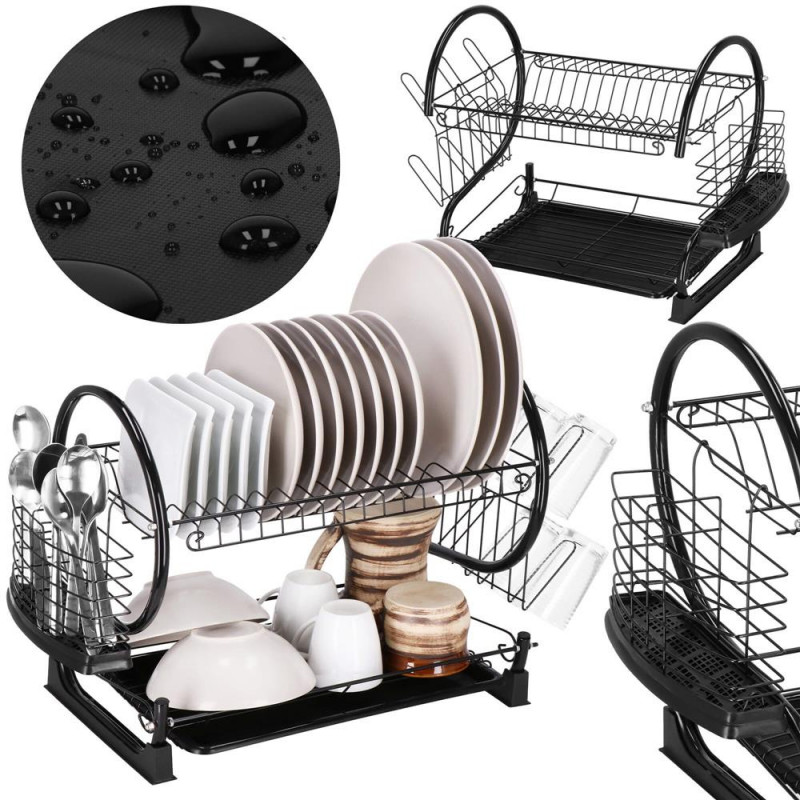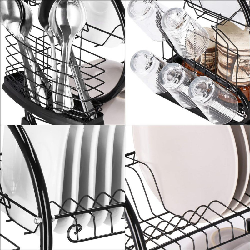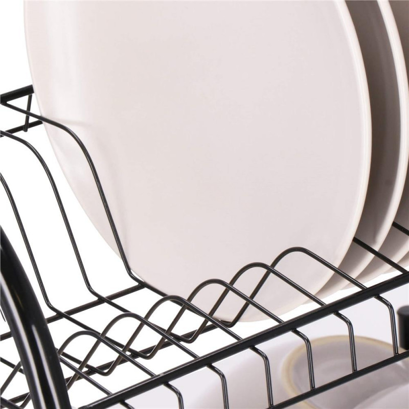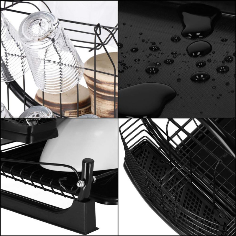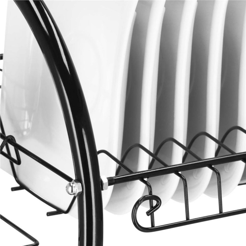 Include o tava de plastic detasabila si un suport pentru ustensile Constructia stabila, cu o baza confortabila, mare, ondulata, impiedica scurgerea apei pe blatul mesei si nu deterioreaza mobilierul. Este echipat cu un organizator de tacamuri agatat care poate fi atasat oriunde pe marginea uscatorului. Aspectul modern al uscatorului in stil loft il va face sa se potriveasca in orice interior. Datorita materialelor din care este confectionat, uscatorul este usor de curatat.