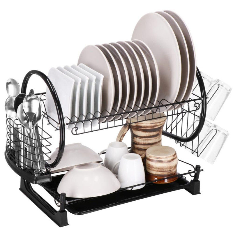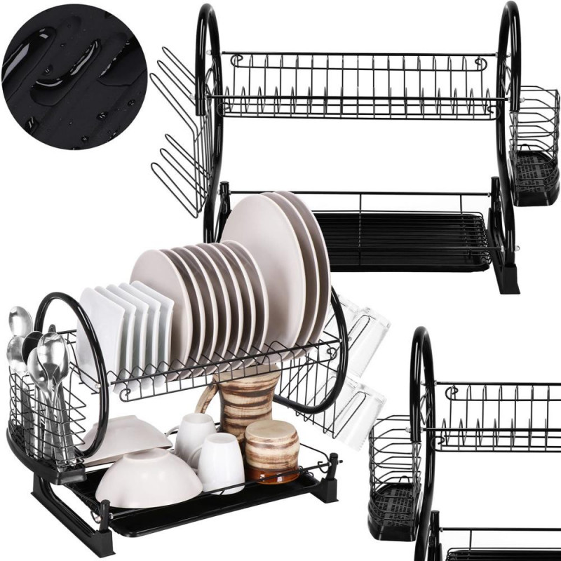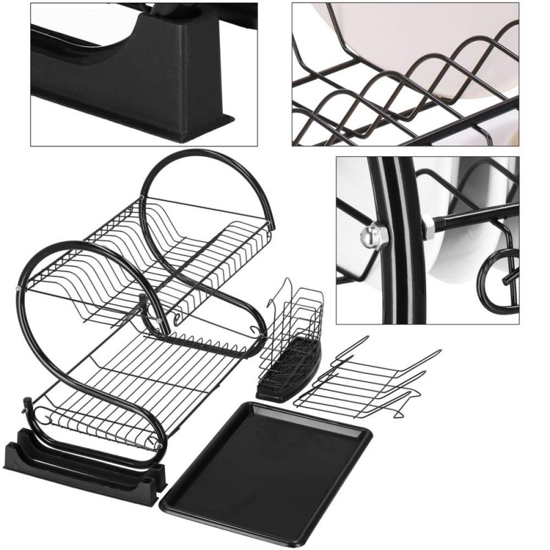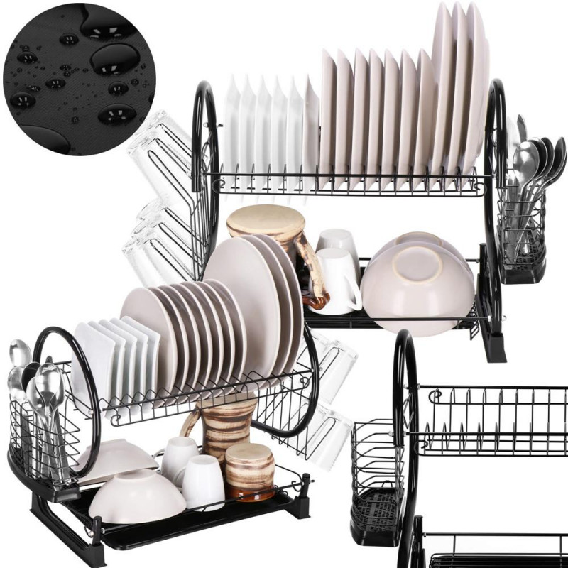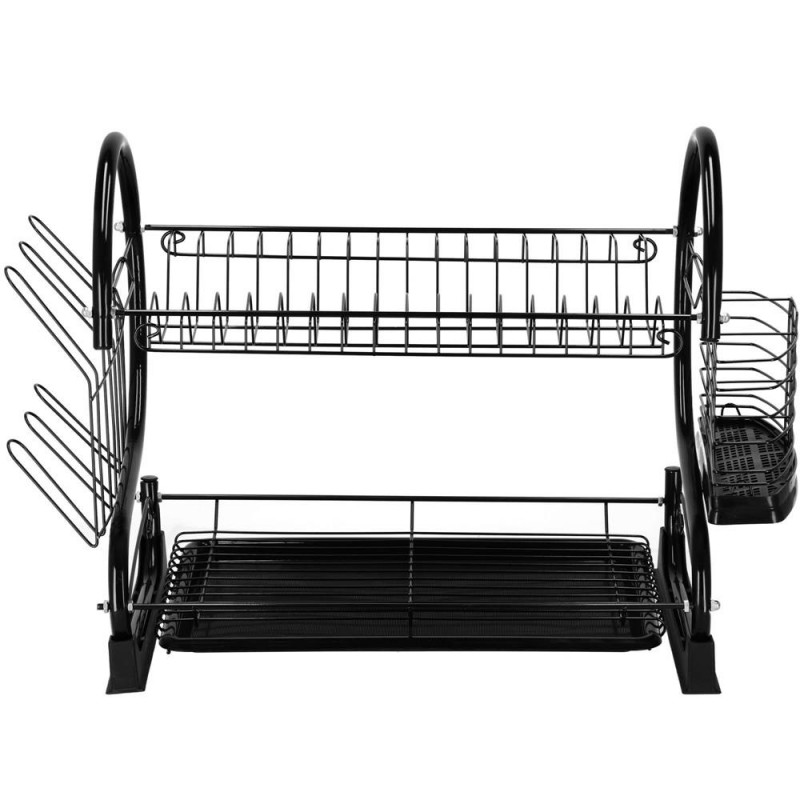 Include o tava de plastic detasabila si un suport pentru ustensile Constructia stabila, cu o baza confortabila, mare, ondulata, impiedica scurgerea apei pe blatul mesei si nu deterioreaza mobilierul. Este echipat cu un organizator de tacamuri agatat care poate fi atasat oriunde pe marginea uscatorului. Aspectul modern al uscatorului in stil loft il va face sa se potriveasca in orice interior. Datorita materialelor din care este confectionat, uscatorul este usor de curatat.