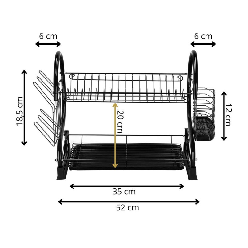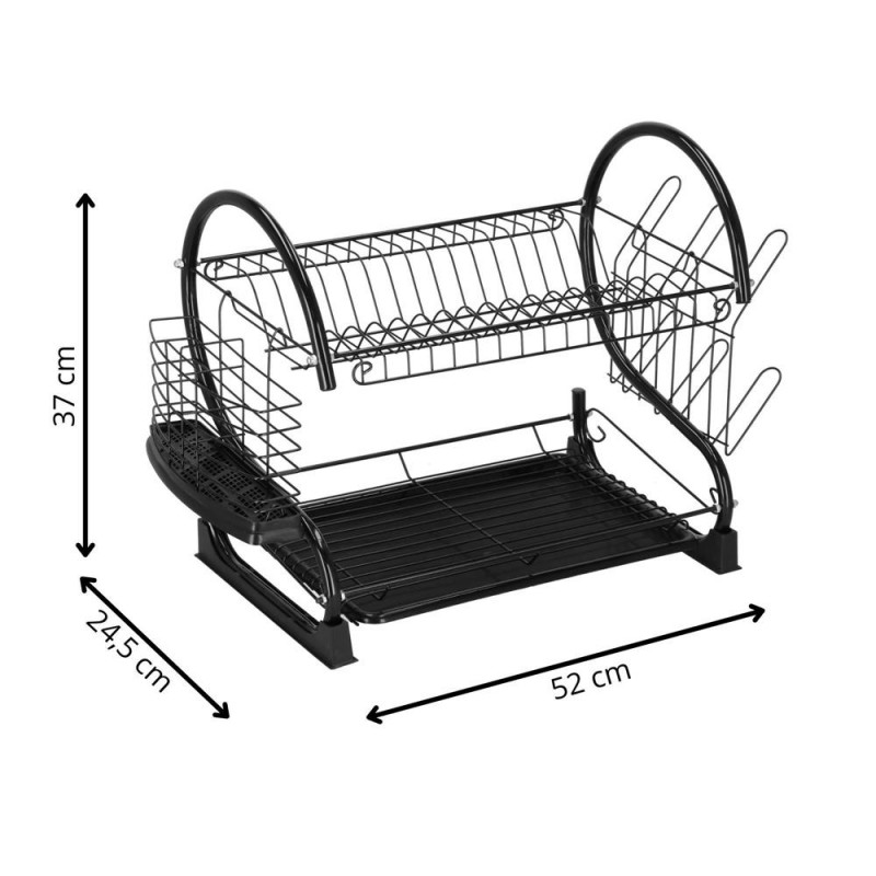 Inaltime: aproximativ 37 cm Uscatorul din metal negru pentru tacamuri si alte ustensile de bucatarie cu finisaj mat, este perfect pentru bucataria dvs. Ustensilele umede se vor usca rapid si excesul de apa va fi retinut pe tava de scurgere.