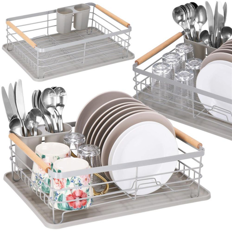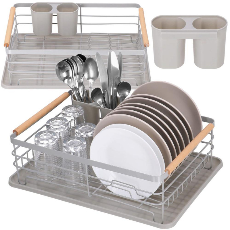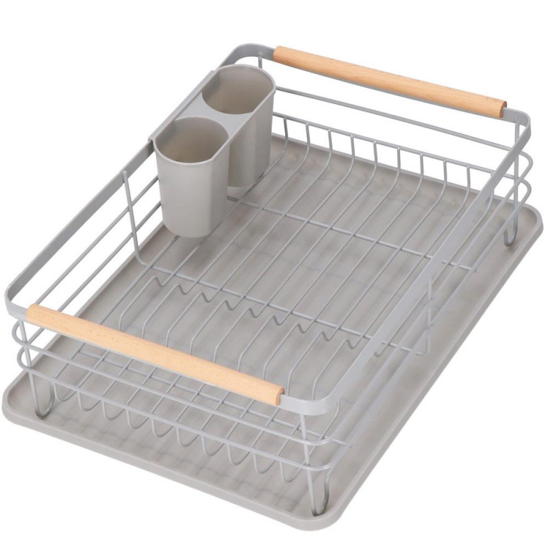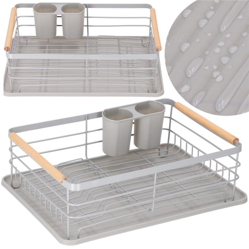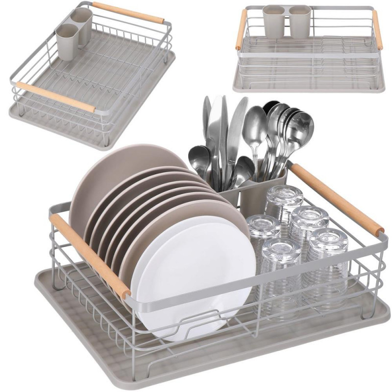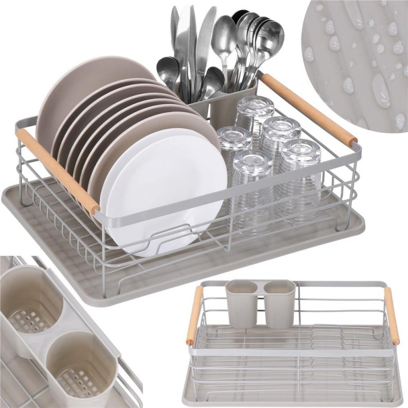 Include o tava de plastic detasabila si un suport pentru ustensile Constructia stabila, cu o baza confortabila, mare, ondulata, impiedica scurgerea apei pe blatul mesei si nu deterioreaza mobilierul. Este echipat cu un organizator de tacamuri agatat care poate fi atasat oriunde pe marginea uscatorului. Aspectul modern al uscatorului in stil loft il va face sa se potriveasca in orice interior. Datorita materialelor din care este confectionat, uscatorul este usor de curatat.