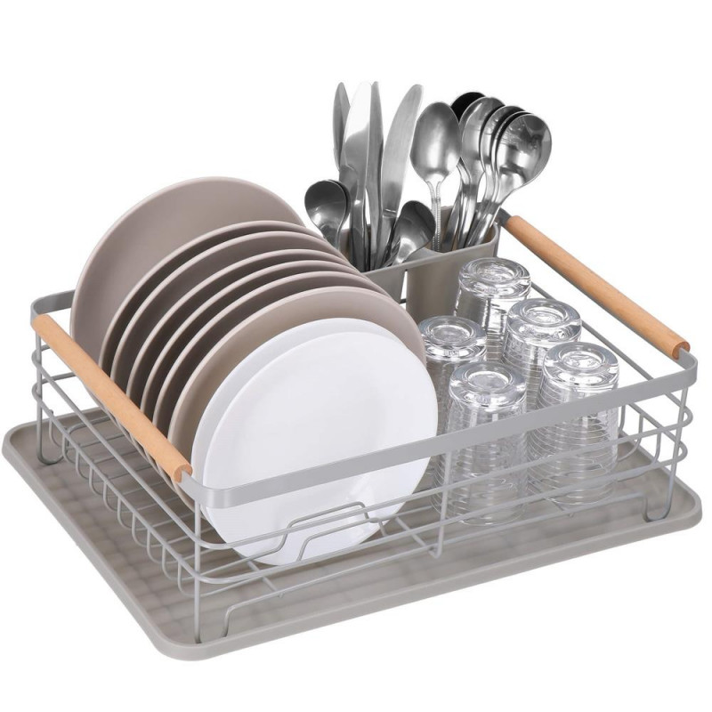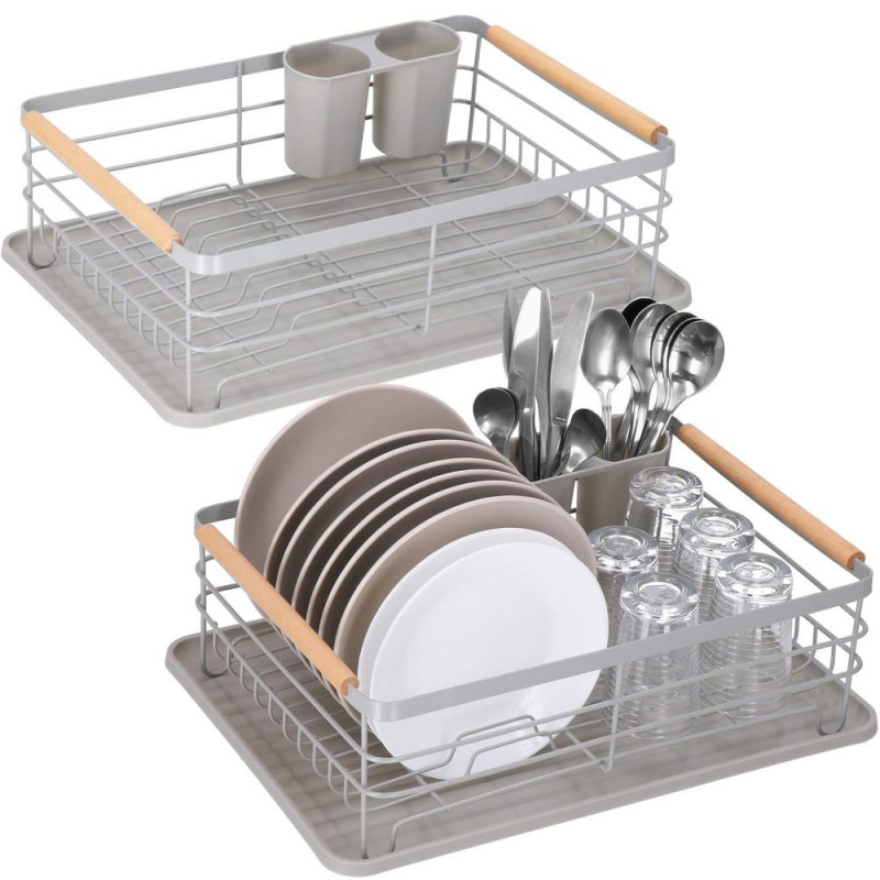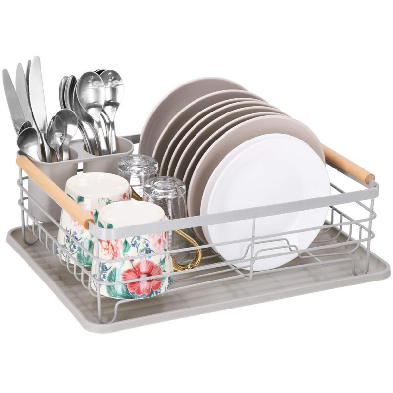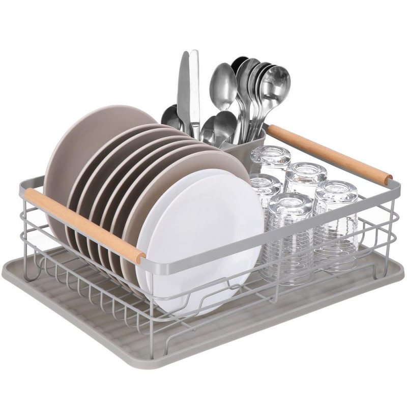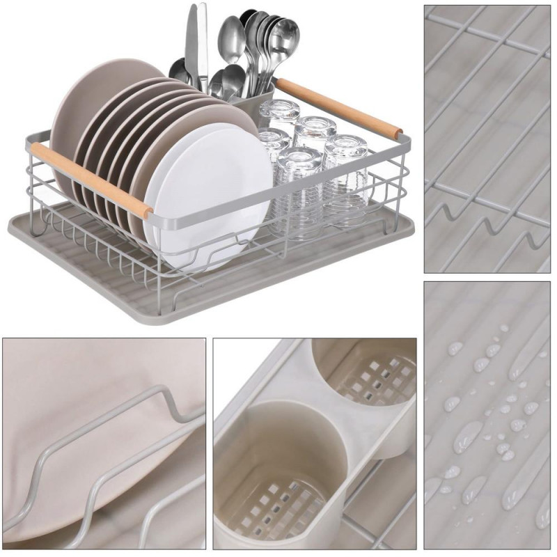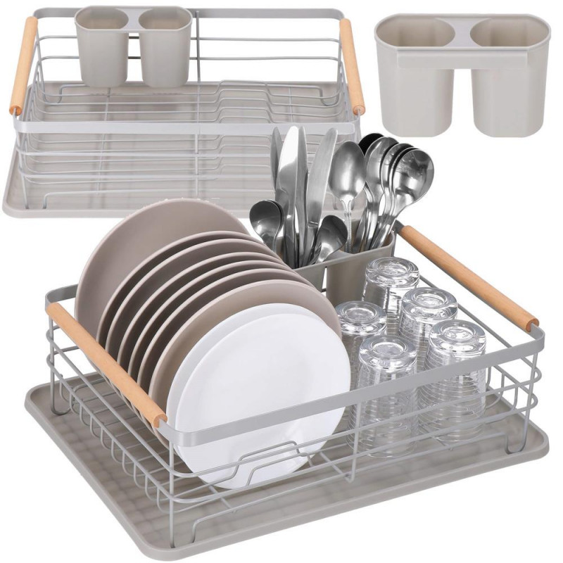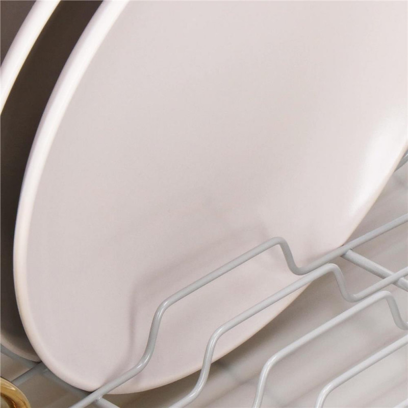 Include o tava de plastic detasabila si un suport pentru ustensile Constructia stabila, cu o baza confortabila, mare, ondulata, impiedica scurgerea apei pe blatul mesei si nu deterioreaza mobilierul. Este echipat cu un organizator de tacamuri agatat care poate fi atasat oriunde pe marginea uscatorului. Aspectul modern al uscatorului in stil loft il va face sa se potriveasca in orice interior. Datorita materialelor din care este confectionat, uscatorul este usor de curatat.