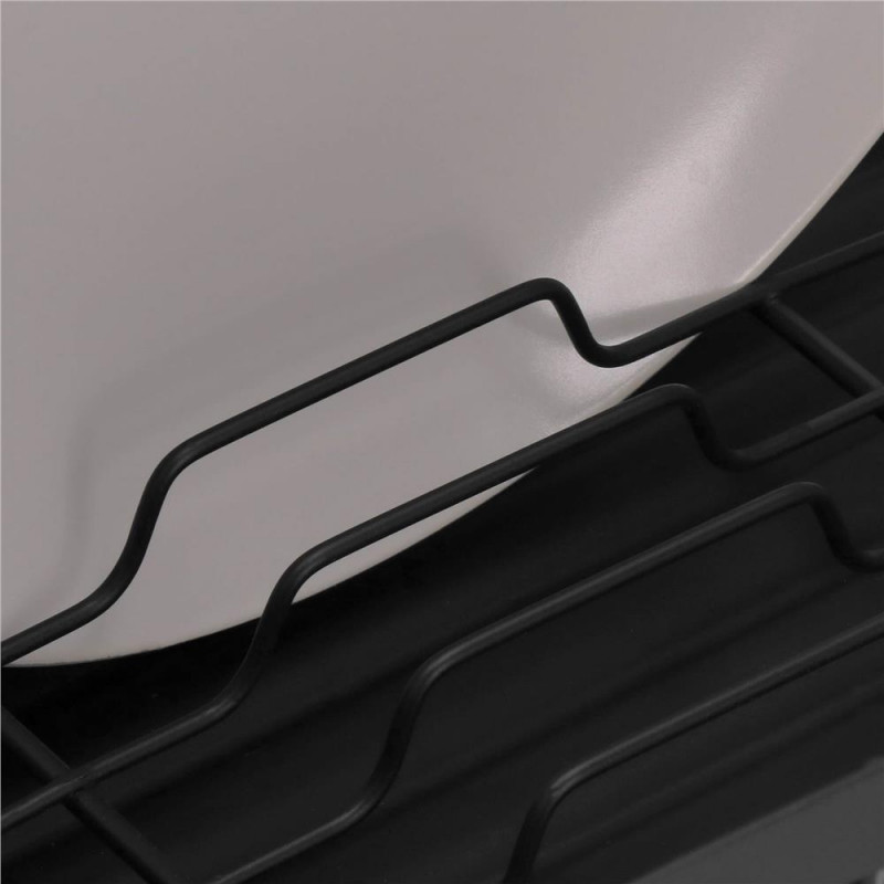 Include o tava de plastic detasabila si un suport pentru ustensile Constructia stabila, cu o baza confortabila, mare, ondulata, impiedica scurgerea apei pe blatul mesei si nu deterioreaza mobilierul. Este echipat cu un organizator de tacamuri agatat care poate fi atasat oriunde pe marginea uscatorului. Aspectul modern al uscatorului in stil loft il va face sa se potriveasca in orice interior. Datorita materialelor din care este confectionat, uscatorul este usor de curatat.