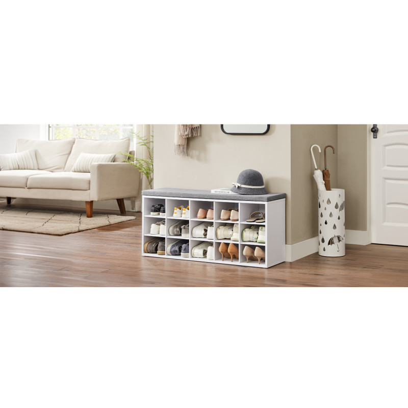 Greutatea produsului: 19,5 kg O banca practica de pantofi cu un scaun confortabil este o solutie eleganta care se potriveste perfect nevoilor oricui doreste sa-si pastreze interiorul ordonat si estetic. Cincisprezece compartimente pentru incaltaminte va permit sa organizati pantofii intregii familii intr-un singur loc, unde fiecare membru al gospodariei isi va gasi un loc desemnat, ceea ce face ca pastrarea ordinii sa fie mai usoara ca niciodata. Banca este realizata dintr-o placa solida din MDF care poate suporta o incarcatura de pana la 200 kg, iar scaunul confortabil iti va permite sa va incaltati si sa va descaltati intr-un mod cat mai placut. Perna este atasata cu Velcro. In plus, designul elegant al mobilierului se incadreaza perfect in diverse amenajari interioare, adaugand un accent subtil, functional. Acest pantofar multifunctional este atat un scaun confortabil cat si un suport practic pentru pantofi.