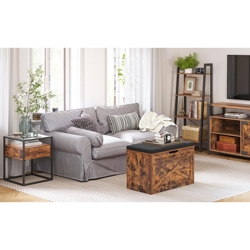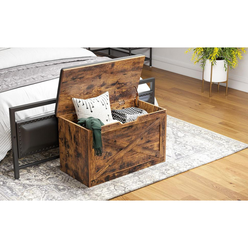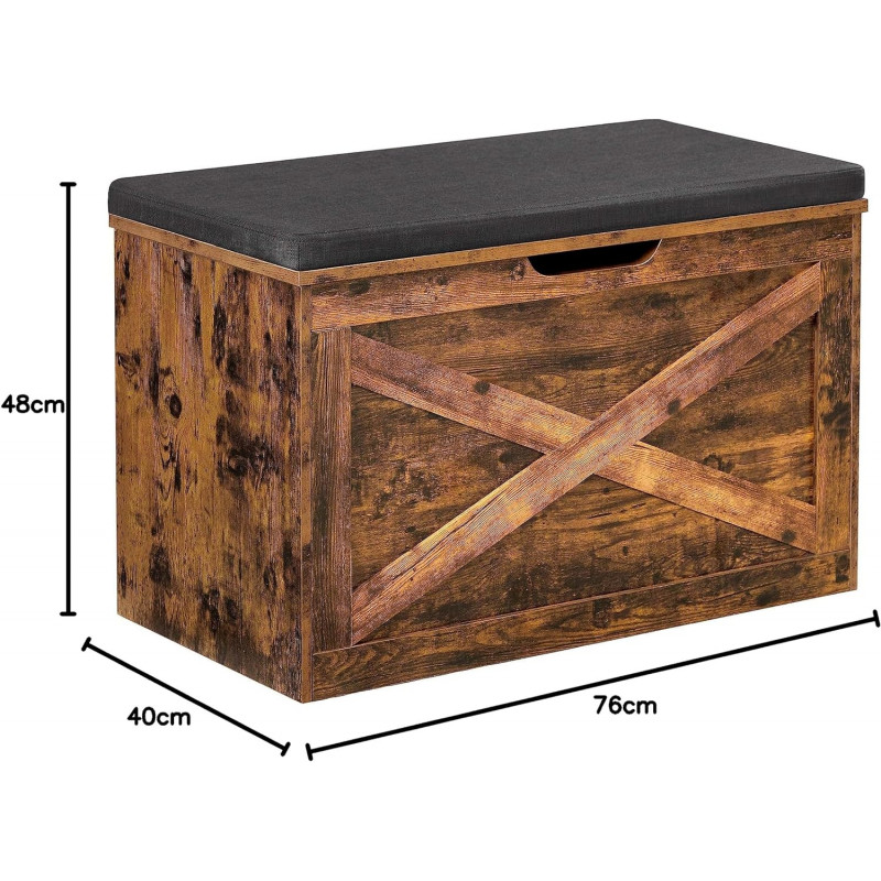 Capacitate maxima de incarcare statica a bancului: 150 kg Despre acest articol Inapoi la "rustic": Stilul hambar cu elemente din trecut confera casei tale un aer rustic. Culoarea maro rustic se potriveste cu decorul traditional.Ridicati capacul si veti gasi un compartiment mare pentru haine, jucarii sau pantofi. Aceasta cutie ocupa putin spatiu si va permite sa organizati mai bine obiectele care sunt peste tot.Asezati-va aici pentru a va schimba pantofii. Perna captusita este atat de pufoasa si confortabila incat sa stai pe ea este o adevarata placere. Fabricata din placi aglomerate, aceasta banca poate sustine pana la 150 kg.Cand depozitati lucruri, nu este nevoie sa tineti capacul. Balamaua de siguranta il mentine intr-o pozitie fixa.Usor de asamblat si de curatat: Datorita