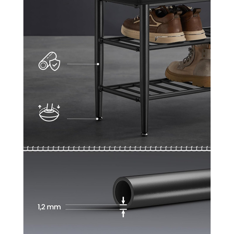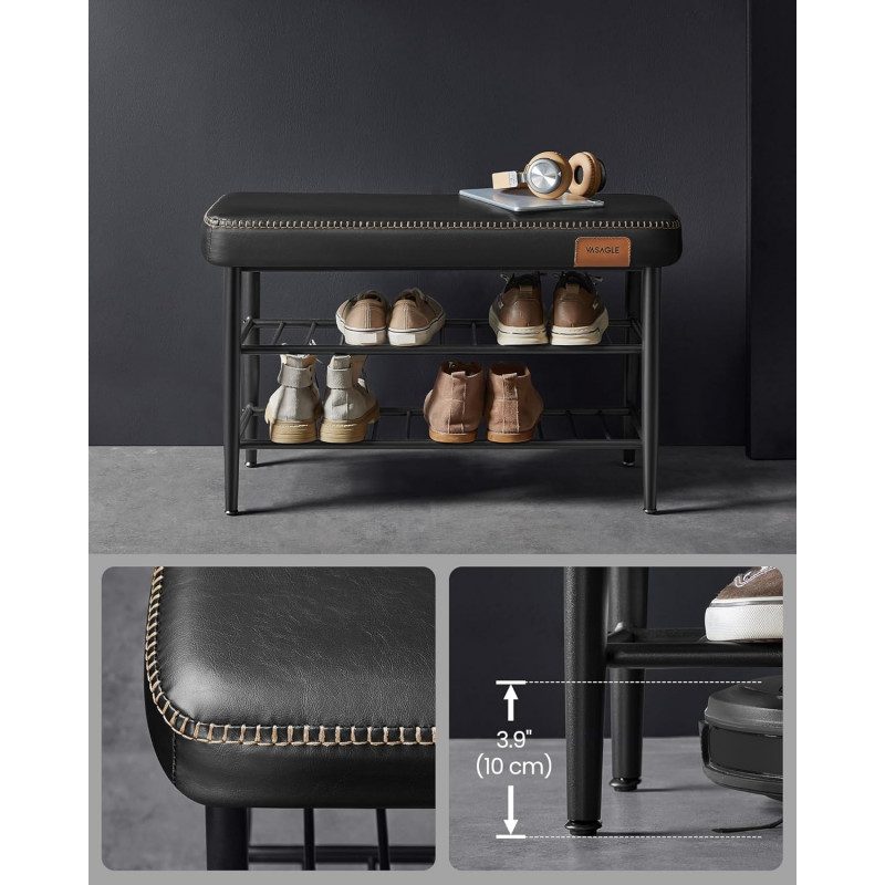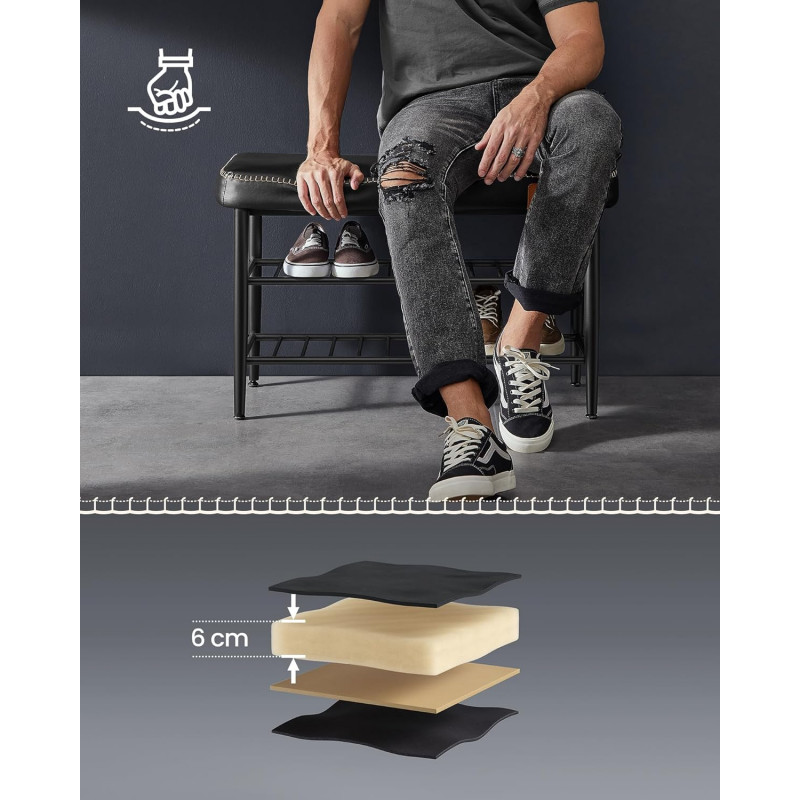 Scurta descriere: VASAGLE EKHO este o banca eleganta si practica pentru hol, ideala pentru organizarea incaltamintei si pentru un plus de confort la incaltare. Designul modern cu finisaj negru si cusaturi fine aduce un aspect premium, in timp ce structura solida si sezutul tapitat asigura durabilitate si confort zilnic.