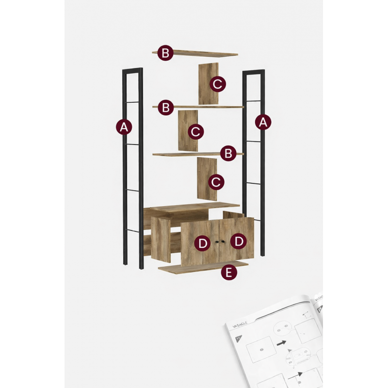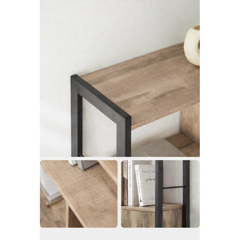 Scurta descriere VASAGLE Biblioteca combina rafturile deschise cu un compartiment inchis pentru o organizare eficienta. Designul industrial imbina structura metalica neagra cu finisajul stejar toast, fiind potrivita pentru living sau birou. Rafturile ofera spatiu generos pentru carti, decoratiuni sau documente, iar dulapul inferior permite depozitarea discreta a obiectelor.
