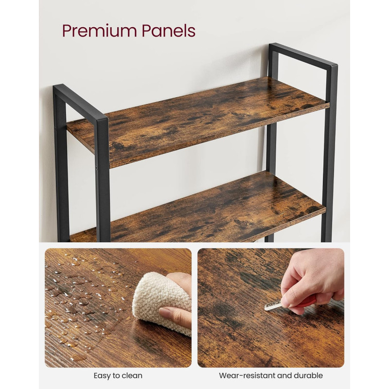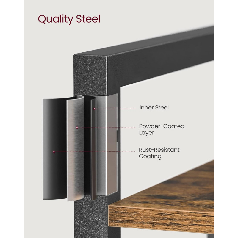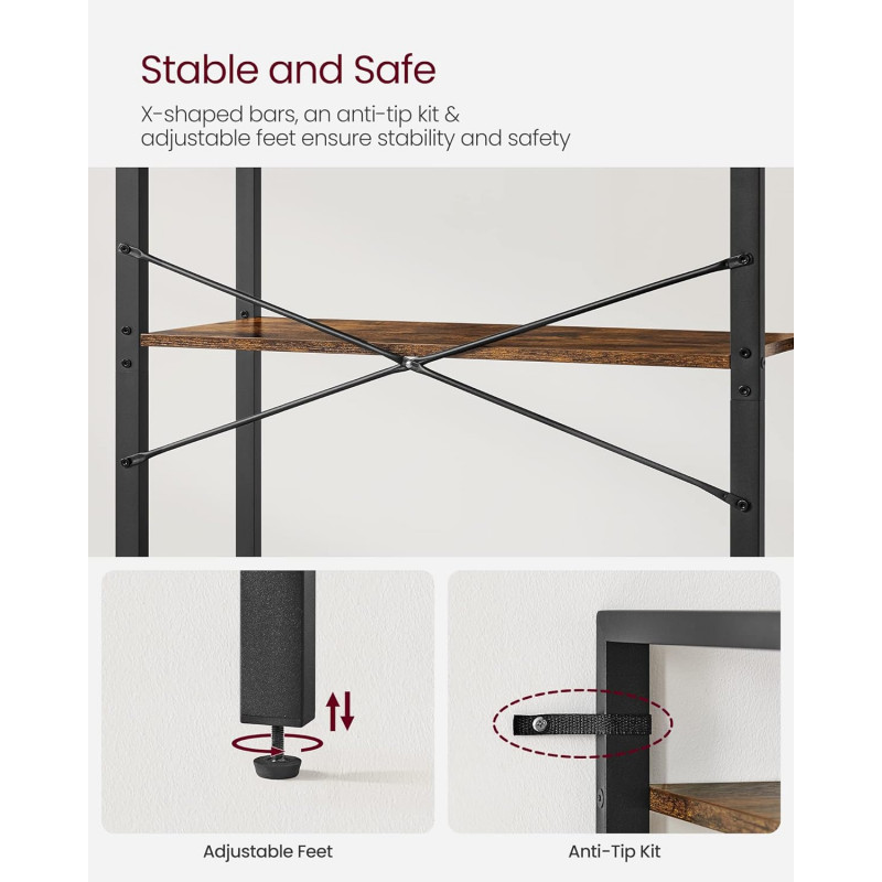 Instructiuni Despre acest articol Aceasta biblioteca de 30 x 66 x 153 cm cu 5 rafturi deschise va ofera mult spatiu de depozitare pentru a va pastra colectia de carti, pentru a afisa decoratiuni in camera de zi sau pentru a va organiza articolele de bucatarie.Barele in forma de X de pe spate sunt pentru intarire, picioarele reglabile mentin raftul stabil pe podele neuniforme, iar kitul anti-rasturnare previne rasturnarea — stabilitatea si siguranta sunt imbunatatite!Fabricat cu un cadru robust din otel si placi aglomerate de calitate, acest raft cu 5 niveluri va oferi obiectelor dumneavoastra de colectie un suport de incredere (incarcare maxima de 10 kg pe fiecare nivel) pentru multi ani de acum inainte.Nu trebuie sa va faceti griji cu privire la asamblare! Piesele numerotate si