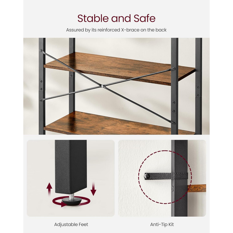Scurta descriere Biblioteca VASAGLE cu 6 rafturi imbina eleganta stilului industrial cu functionalitatea practica. Construita din PAL rezistent si cadru metalic solid, ofera un spatiu vertical generos pentru carti, decoratiuni sau dosare, fara a ocupa mult loc la sol.