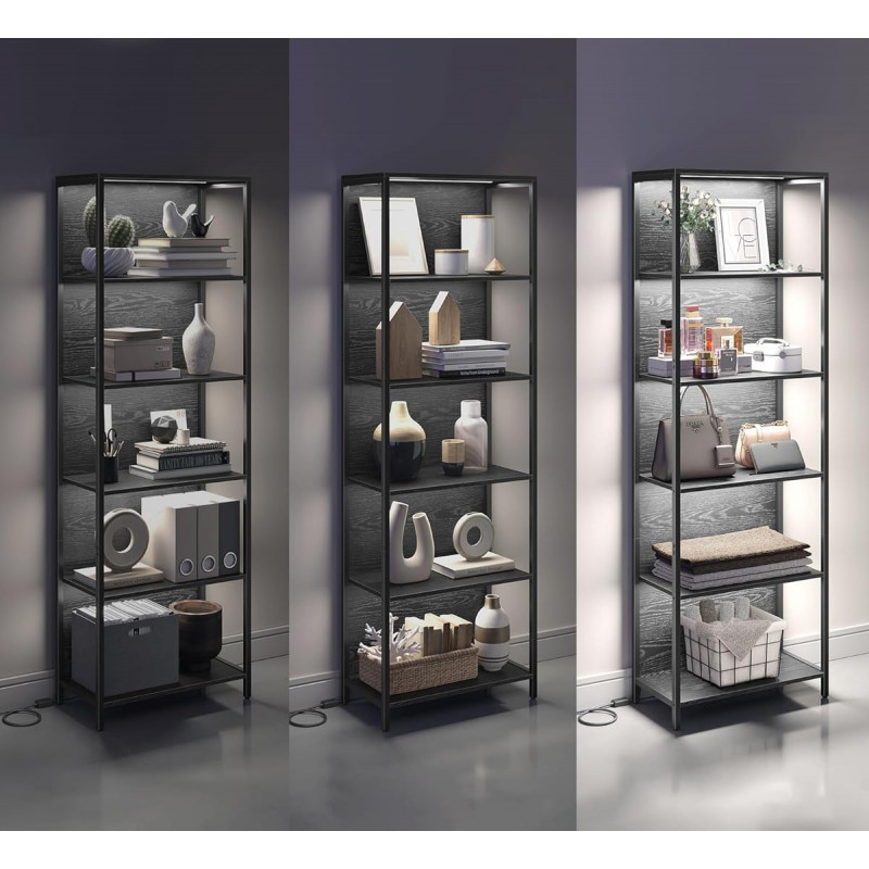 Scurta descriere: VASAGLE Biblioteca cu 6 polite si iluminare LED reglabila transforma orice incapere intr-un spatiu modern si organizat. Cu 25 de culori, mai multe niveluri de luminozitate si moduri de iluminare, aceasta piesa este ideala pentru living, dormitor sau birou. Designul compact ofera spatiu generos de depozitare fara a ocupa mult loc pe podea.