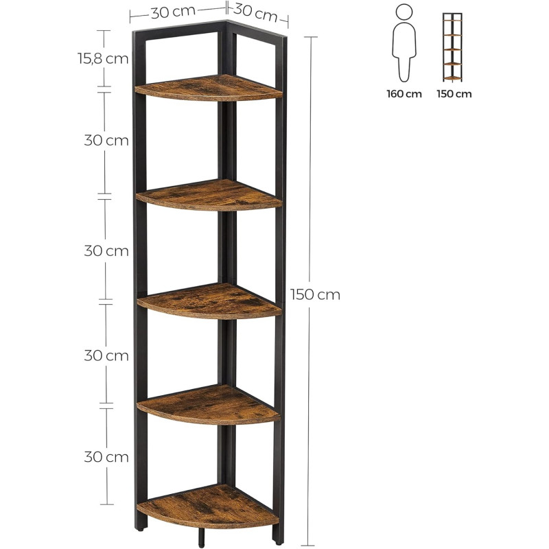 Asamblare necesara: Da Despre acest articol Vaze elegante din ceramica? Bine ati venit! Acestea vor fi sustinute in mod fiabil de acest suport de colt cu 5 niveluri, cu o capacitate max. Sarcina de 5 kg pentru fiecare raft, datorita cadrului robust din otel si panourilor durabile din PAL.Stabilitate multiplicata: Structura stabila si picioarele reglabile mentin raftul de colt echilibrat. Mai mult decat atat, va oferim 2 curele anti-rasturnare cu care puteti fixa raftul de perete pentru mai multa siguranta si calmul dumneavoastra interior.Elibereaza-ti pasiunea pentru afisare: carti, suculente, rame foto, figurine... Afiseaza-le pe rafturi la o distanta de 30 cm intre ele, creand un colt care sa-ti exprime personalitatea, valorificand in acelasi timp spatiul nefolosit.Va faceti griji pentru asamblare? VASAGLE nu te pune niciodata intr-o situatie dificila. Cu piese numerotate,