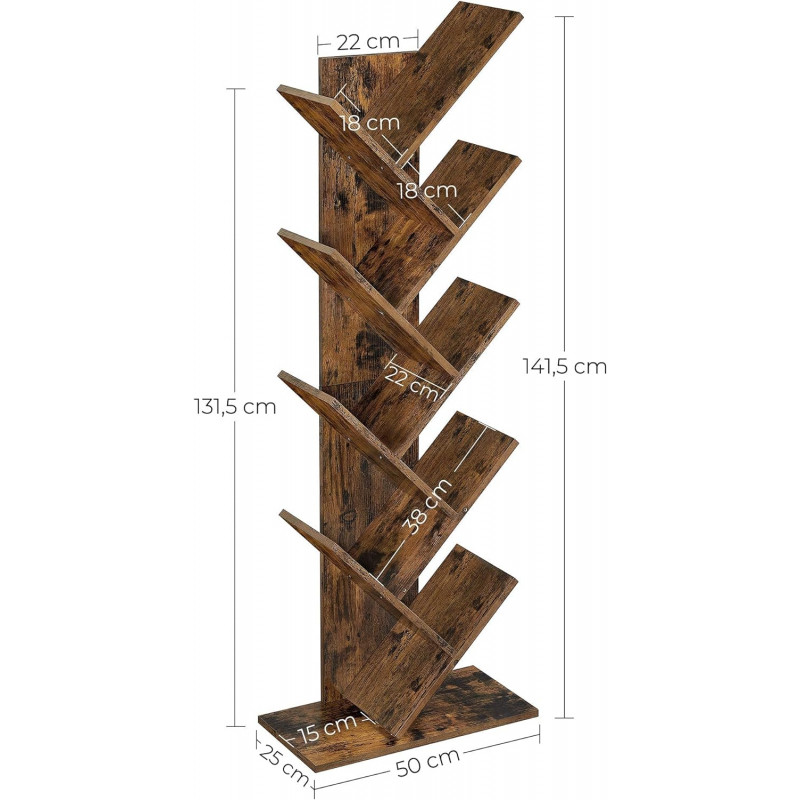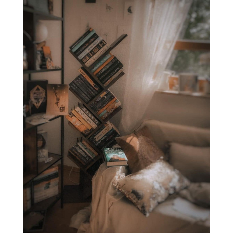 Raft pentru iubitorii de carti: Cu o silueta geometrica si o functie exceptionala, acest raft de carti in forma de copac este un element luminos in biroul dvs. de acasa; umpleti ramurile cu cartile dvs. preferate pentru a crea un afisaj atragator. Pentru spatii mici : Biblioteca are 8 rafturi deschise si poate gazdui o multime de carti (format A4 si A5) si alte ornamente, ocupand in acelasi timp doar o suprafata mica de podea; cu dimensiuni de 50 x 25 x 141,5 cm (L x l x i), perfecta pentru apartamente, spatii inguste, sali de clasa sau colturi