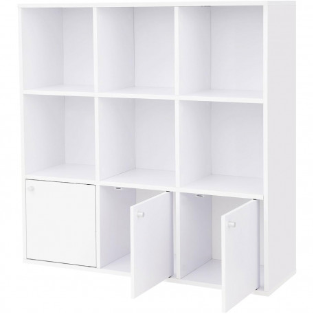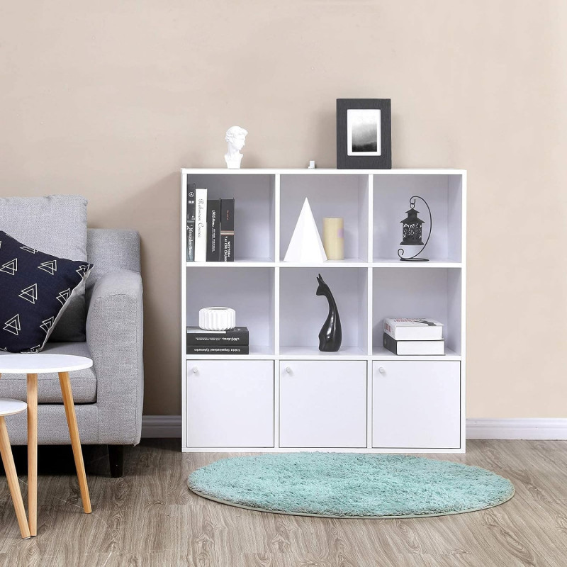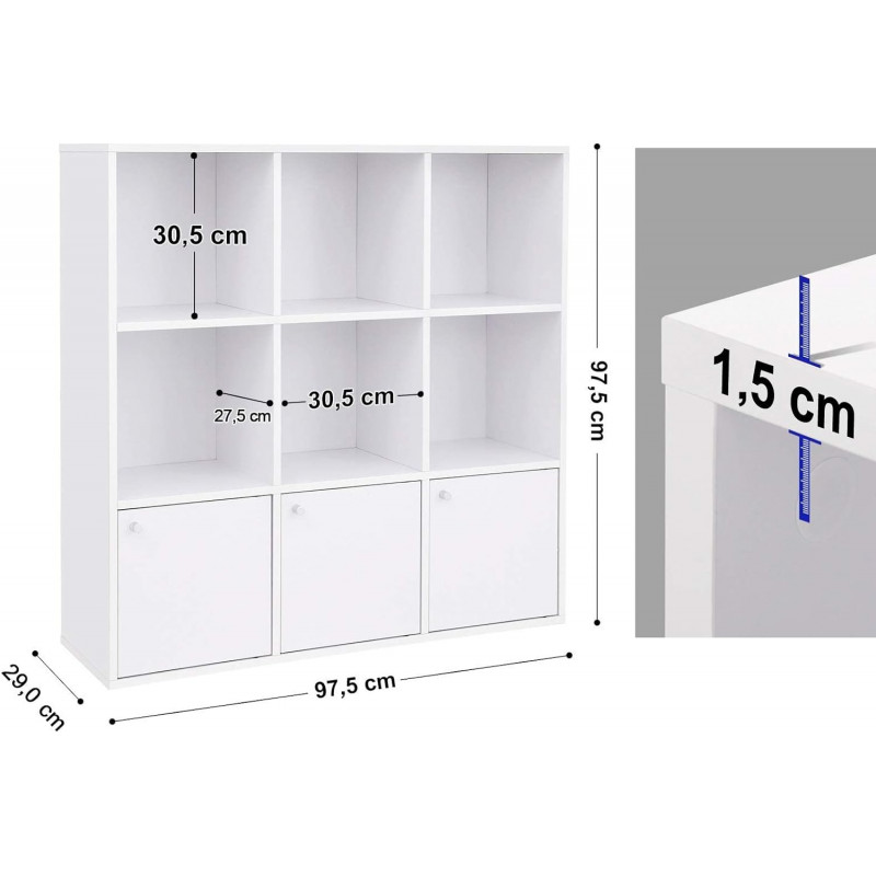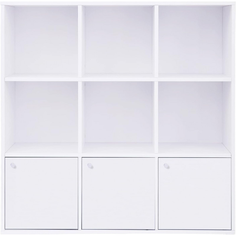 Greutate: 28 kg Despre acest articol Desi este un raft de carti sau o biblioteca pe podea, aceasta unitate de depozitare cu mai multe niveluri poate fi folosita si ca raft pentru jucarii in camera copilului, raft de birou pentru consumabile sau suport pentru DVD-uri.Cu 6 cuburi deschise si 3 cuburi in stil dulap, organizatorul de fisiere ofera o multime de spatiu de depozitare pentru manuale, reviste, jucarii, accente decorative, pantofi, adidasi si/sau media.Imbunatatit cu cleme pentru a securiza panoul care aluneca in caneluri; dispozitivul anti-rasturnare echipat va ajuta la stabilizarea raftului de sine statator, astfel incat sa nu se clatinte de fiecare data cand puneti cartile.Acest raft de depozitare de 29 x 97,5 x 97,5 cm este realizat din PAL solid. Fiecare raft suporta pana la 10 kg; raftul superior poate sustine pana la 50 kg. De acum inainte, toate articolele dvs. sunt sustinute ferm si fiabil.
