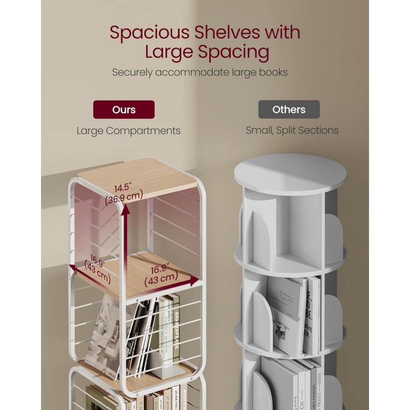Scurta descriere Biblioteca rotativa VASAGLE aduce un plus de functionalitate si design modern in orice locuinta. Cu 4 rafturi spatioase si opritoare pentru carti, ofera acces usor la colectiile preferate si se integreaza perfect in colturi sau spatii mici. Structura din PAL si cadru metalic asigura rezistenta si stabilitate, iar sistemul anti-rasturnare sporeste siguranta.