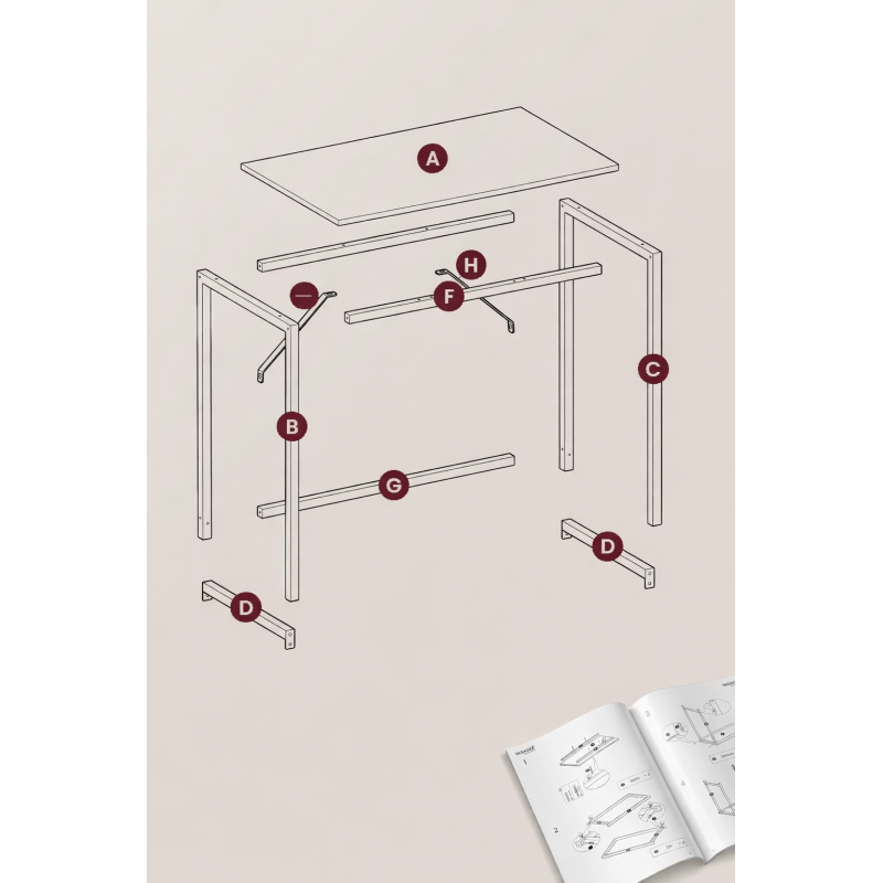Scurta descriere: Birou de calculator cu design simplu si functional, potrivit pentru lucru, studiu sau activitati de birou. Dimensiunea compacta il face ideal pentru dormitor, living sau spatii mai mici, oferind totodata o suprafata de lucru confortabila.