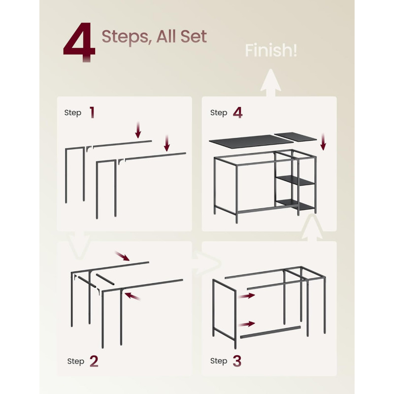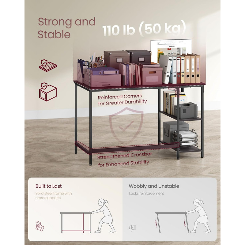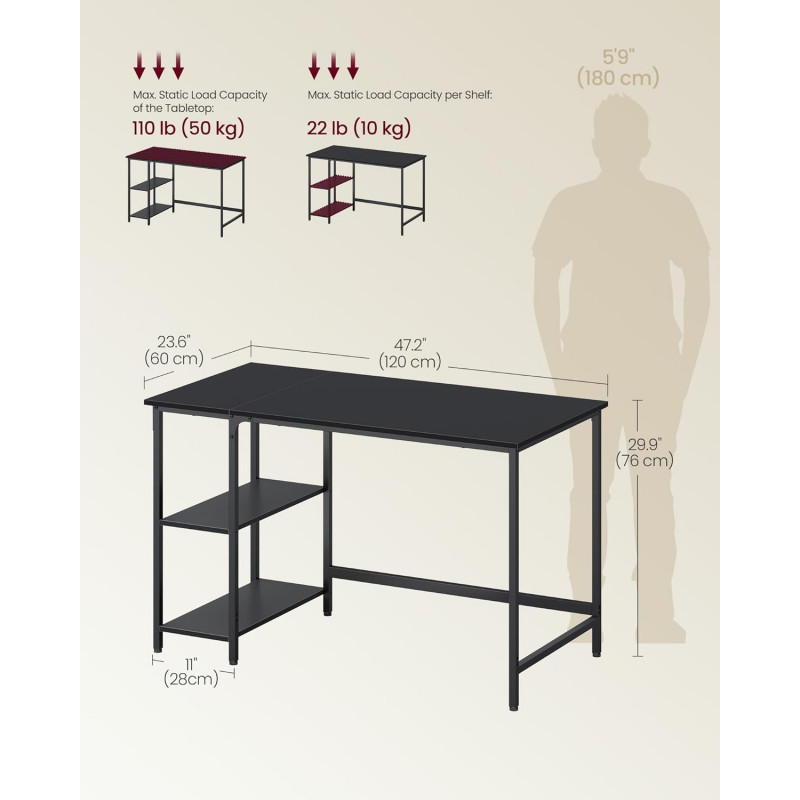 Scurta descriere Biroul VASAGLE este alegerea ideala pentru un spatiu de lucru organizat si eficient. Cu un blat generos si rafturi laterale ajustabile, iti permite sa iti personalizezi zona de lucru in functie de nevoi. Designul industrial si structura solida il fac potrivit pentru orice birou modern.