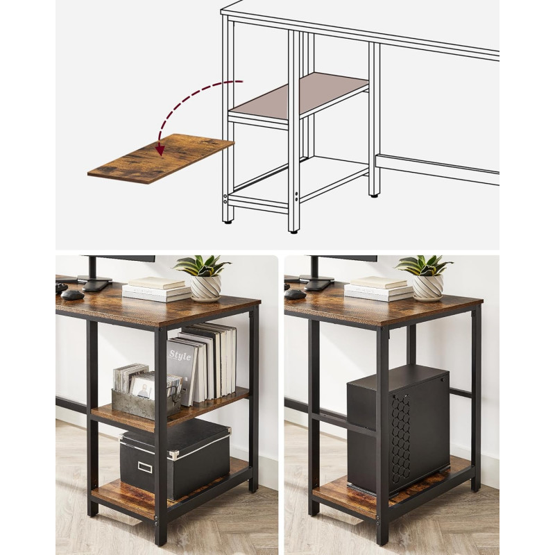 Rafturi ajustabile: 2 rafturi de depozitare, dintre care unul este detasabil, pot fi instalate pe dreapta sau pe stanga, dupa cum aveti nevoie. In plus, puteti sa scoateti raftul din mijloc pentru a va potrivi turnul computerului sau sa-l pastrati pentru a stoca carti, fisiere sau alte elemente utilizate frecvent