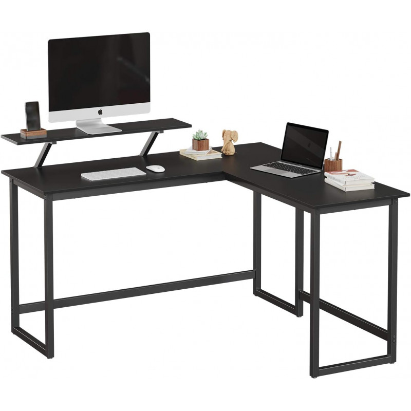 Capacitate de incarcare statica: 50 kg Chiar mai practic : acest birou de colt negru elegant nu are doar o forma in L care economiseste spatiu. De asemenea, este echipat cu un suport practic pentru monitor cu dimensiunile de 20 x 90 cm, care poate fi mutat cu usurinta de-a lungul marginii biroului cu ajutorul unor suporturi cu suruburi in forma de stea Fara batai de cap : toate piesele acestui birou sunt numerotate si sunt incluse