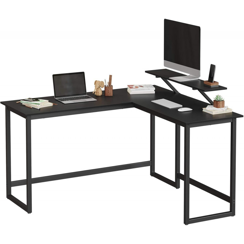 instructiuni detaliate, precum si o surubelnita. Asamblarea biroului decurge ca un ceas Puteti tasta salbatic - Cadrul din otel este deosebit de stabil, cu o circumferinta de 3 x 3 cm. Acesta formeaza o baza solida pentru blatul mesei, care poate suporta o sarcina de pana la 50 kg. Astfel, chiar daca loviti energic tastele, stabilitatea piesei de mobilier nu este compromisa Toate intr-o singura linie : Picioarele reglabile ale biroului pentru calculator faciliteaza compensarea micilor denivelari ale podelei. De asemenea, podeaua este protejata de zgarieturi si zgarieturi Ce obtineti? Un birou de colt cu economie de spatiu, cu suport integrat pentru monitor, accesorii de montare si