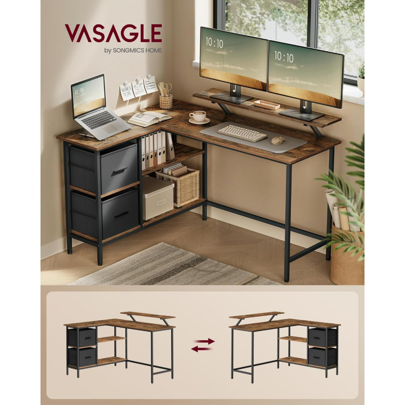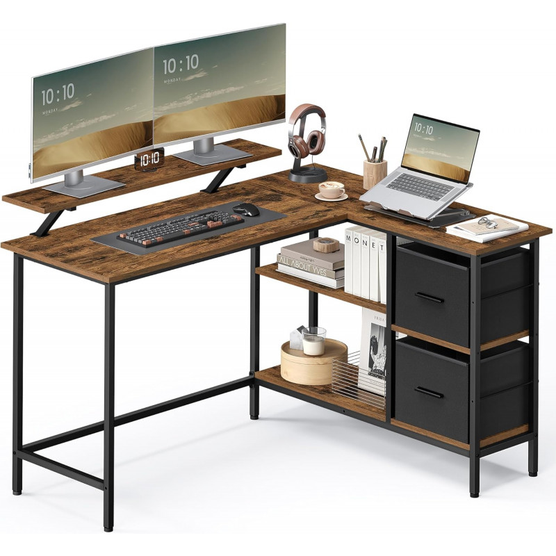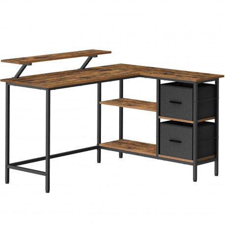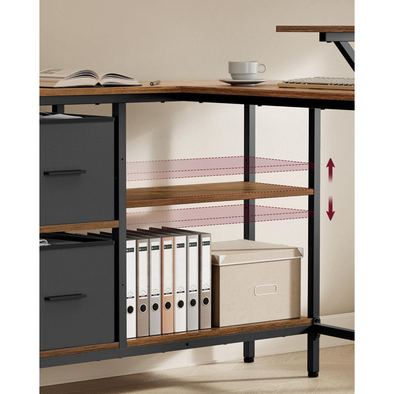 Mult spatiu de depozitare: Dispunand de 2 sertare spatioase, acest birou de colt ofera suficient spatiu pentru fisiere si elemente esentiale de birou. Raftul din mijloc este reglabil la 3 inaltimi pentru a va satisface nevoile de depozitare